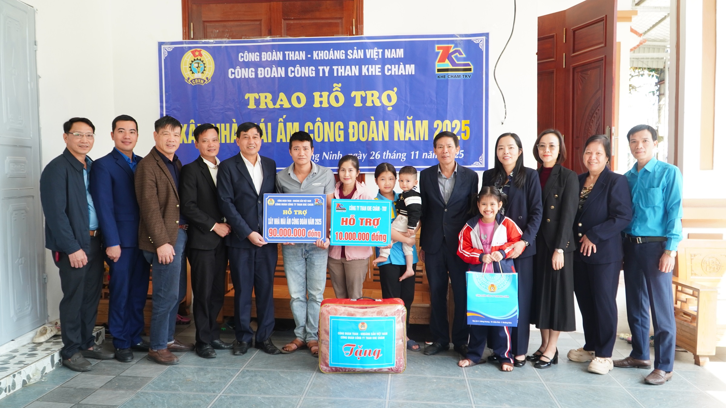 Ngày 26/11/2025, Thừa ủy quyền của Công đoàn TKV, Công đoàn Công ty Than Khe Chàm tổ chức trao kinh phí hỗ trợ cho 2 gia đình đoàn viên có hoàn cảnh khó khăn được hỗ trợ xây nhà “ Mái ấm công đoàn” đợt 1 năm 2025.