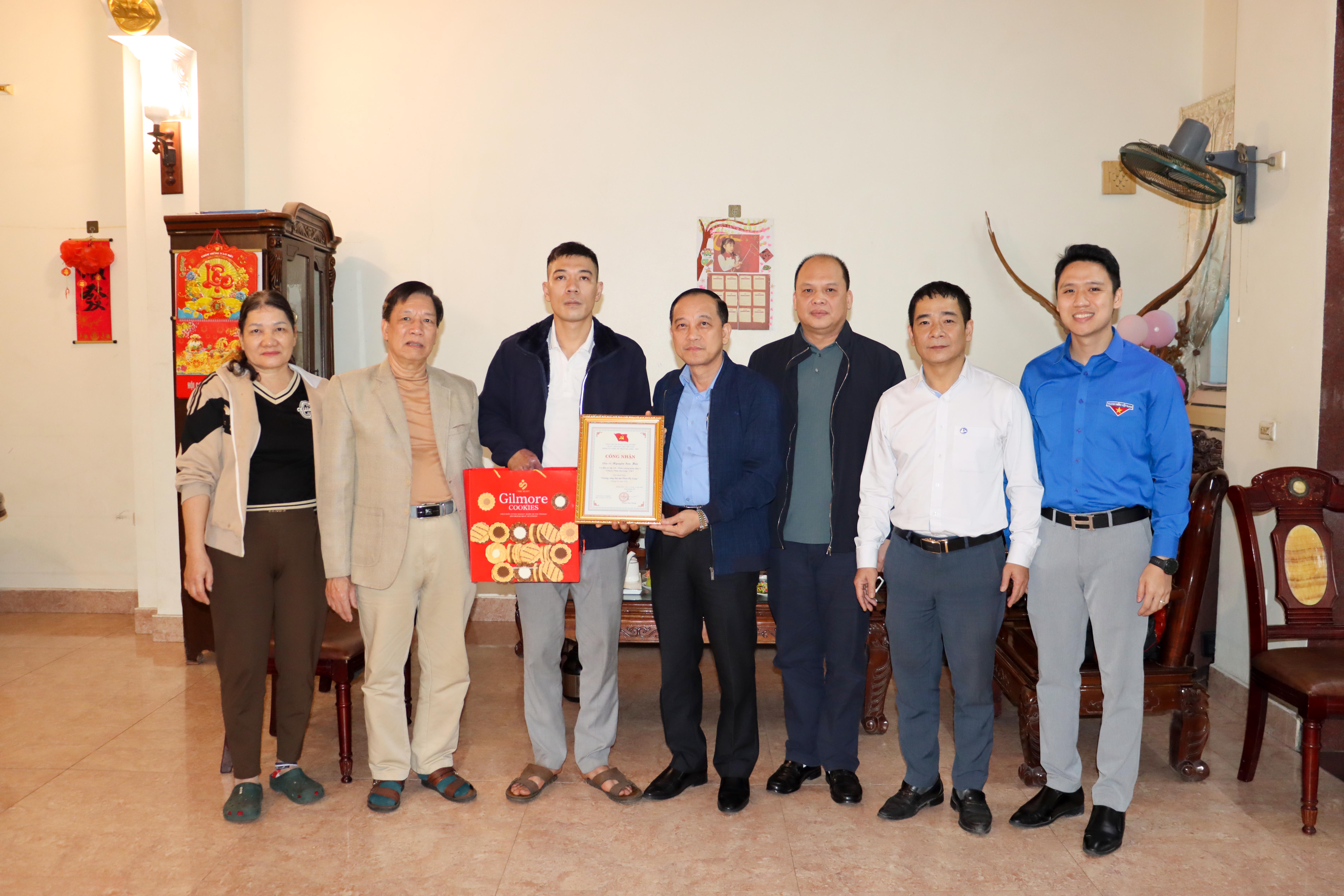 Vừa qua Đồng chí Đỗ Văn Hùng - Ủy viên Ban Thường vụ Đảng ủy, Chủ tịch Công đoàn Công ty cùng đoàn công tác Công ty Than Hạ Long đã đến gia đình thăm hỏi, động viên và trao tặng danh hiệu “Gương sáng thợ mỏ Than Hạ Long” cho đồng chí Nguyễn Sơn Hải, đảng viên, thợ cơ điện lò bậc 4/5, hiện đang công tác tại Phân xưởng Khai thác 1.