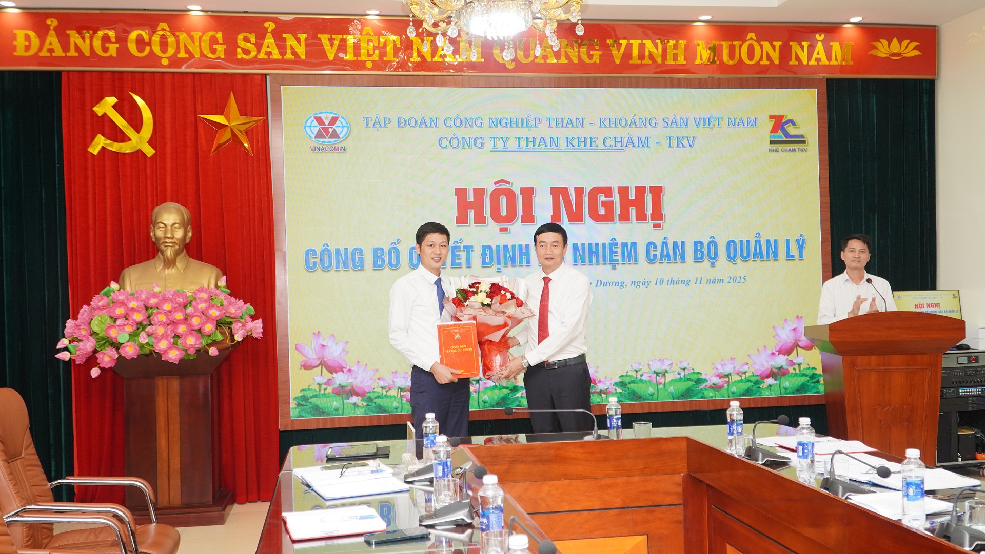 Ngày 10/11/2025, Công ty Than Khe Chàm tổ chức hội nghị công bố quyết định bổ nhiệm PGĐ Công ty. Được sự ủy quyền của Tổng Giám đốc Tập đoàn Công nghiệp Than - Khoáng sản Việt Nam, đồng chí Lê Đình Dương Bí thư Đảng ủy - Giám đốc Công ty đã trao quyết định bổ nhiệm đồng chí Phan Đình Thản - Trưởng phòng TCNS giữ chức vụ PGĐ Công ty; đồng chí Nguyễn Mạnh Đô - Phó phòng KCM được bổ nhiệm giữ chức Trưởng phòng TCNS từ ngày 10/11/2025.