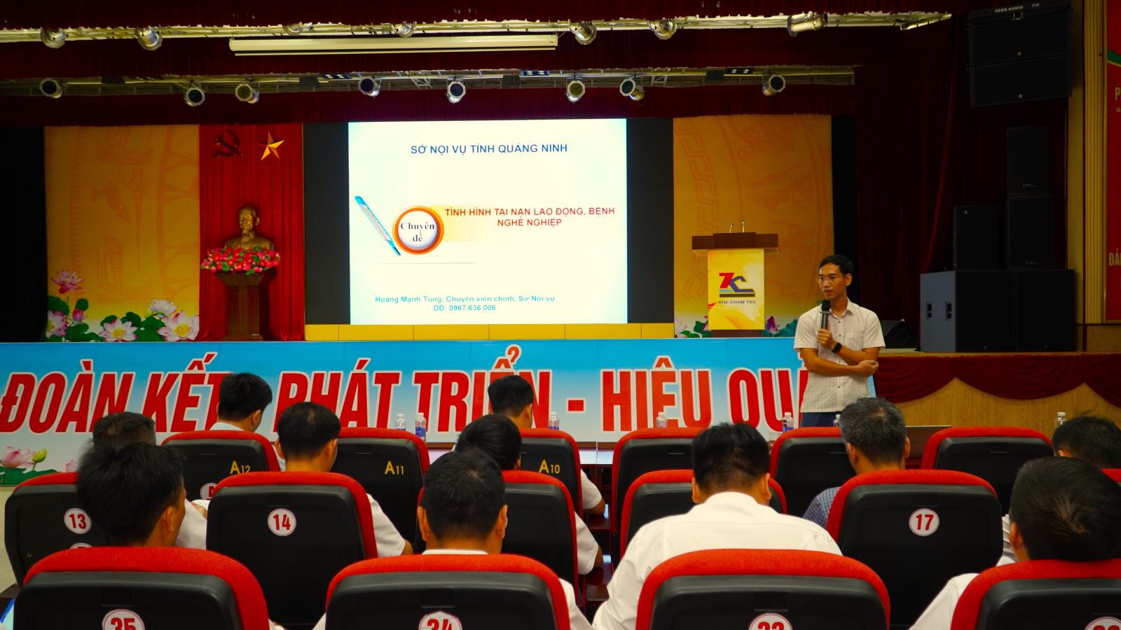 Đồng chí Hoàng Mạnh Tùng - Chuyên viên phòng Chính sách lao động - Sở Nội vụ QN truyền giảng