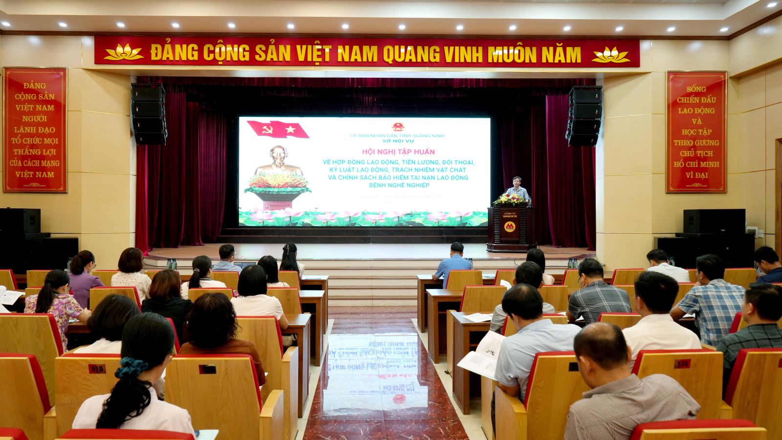 Trong quá trình tập huấn, các học viên đã được cán bộ giảng viên thuộc phòng Chính sách lao động – Sở Nội vụ tỉnh Quảng Ninh trực tiếp truyền đạt những chuyên đề liên quan đến hợp đồng lao động; đối thoại, thương lượng, thoả ước lao động tập thể; tiền lương; thời gian làm việc, thời giờ nghỉ ngơi; kỷ luật lao động, trách nhiệm vật chất; chính sách bảo hiểm tai nạn lao động, bệnh nghề nghiệp. Các học viên cùng thảo luận và được giảng viên giải đáp, hướng dẫn những khó khăn, vướng mắc việc thực hiện các vấn đề liên quan đến pháp luật lao động tại doanh nghiệp.