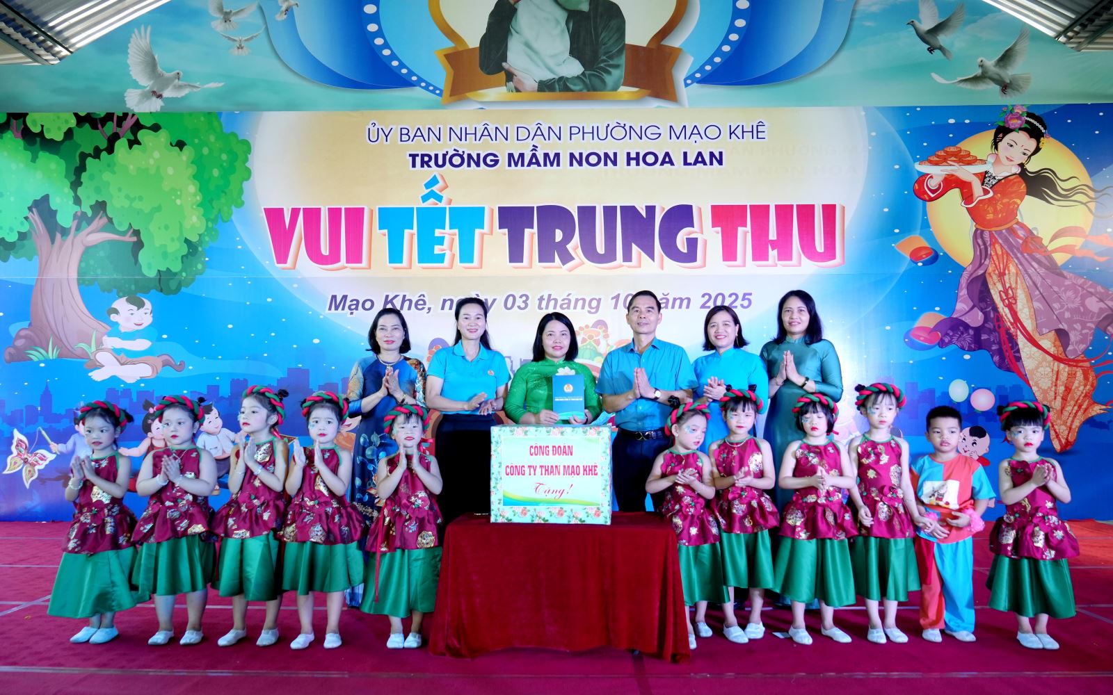 Trong dịp này, đại diện Công đoàn Công ty đã tới thăm tặng quà Trường mầm non Hoa Lan – ngôi trường có số lượng học sinh phần lớn là con cán bộ, công nhân Công ty than Mạo Khê. Đoàn công tác chúc mừng những kết quả dạy và học của cô trò nhà trường trong thời gian vừa qua và mong muốn nhà trường chuẩn bị những điều kiện tốt nhất để cho các cháu có môi trường học tập chất lượng, thân thiện và vui đón Tết Trung Thu năm nay với nhiều hoạt động bổ ích. Nhân dịp này, Công đoàn Công ty còn tổ chức thăm, tặng quà của Công đoàn TKV cho 57 cháu là con CB, CNVCLĐ Công ty có hoàn cảnh khó khăn với tổng số tiền 57 triệu đồng; tặng quà của Công đoàn Công ty cho 45 cháu là con công nhân lao động thuộc diện: con mồ côi bố/mẹ, bị bệnh hiểm nghèo, con bị tật nguyền, tự kỷ, thiểu năng,… với tổng số tiền 45 triệu đồng.