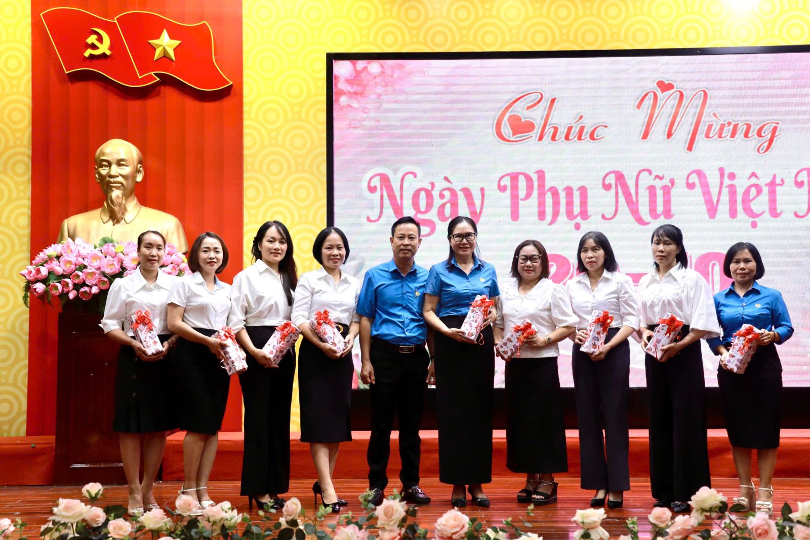 Đồng chí Nguyễn Thị Hằng - Phó Chủ tịch CĐ công ty tặng quà 20/10 cho đoàn viên nữ