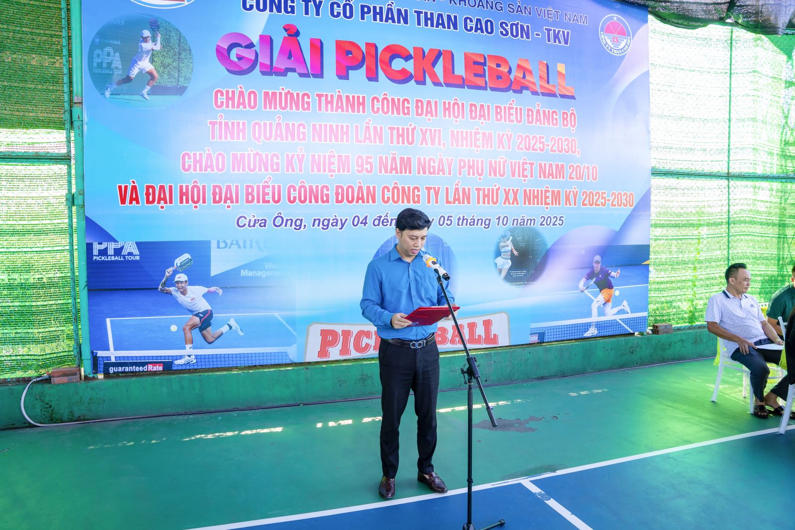 Thực hiện Kế hoạch 8999 /KH-TCS-VP ngày 16/9/2025 về việc tổ chức giải Pickleball CNVCLĐ Công ty cổ phần than Cao Sơn năm 2025 chào mừng thành công Đại hội đại biểu Đảng bộ tỉnh Quảng Ninh lần thứ XVI, nhiệm kỳ 2025-2030; chào mừng kỷ niệm 95 năm Ngày phụ nữ Việt Nam 20/10 và Đại hội đại biểu công đoàn Công ty lần thứ XX, nhiệm kỳ 2025-2030, ngày 04/10/2025, trên sân PickleBall Công ty đã diễn ra Lễ khai mạc Giải Pickleball năm 2025.