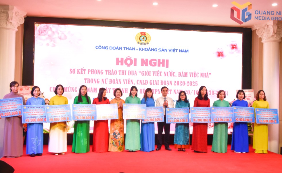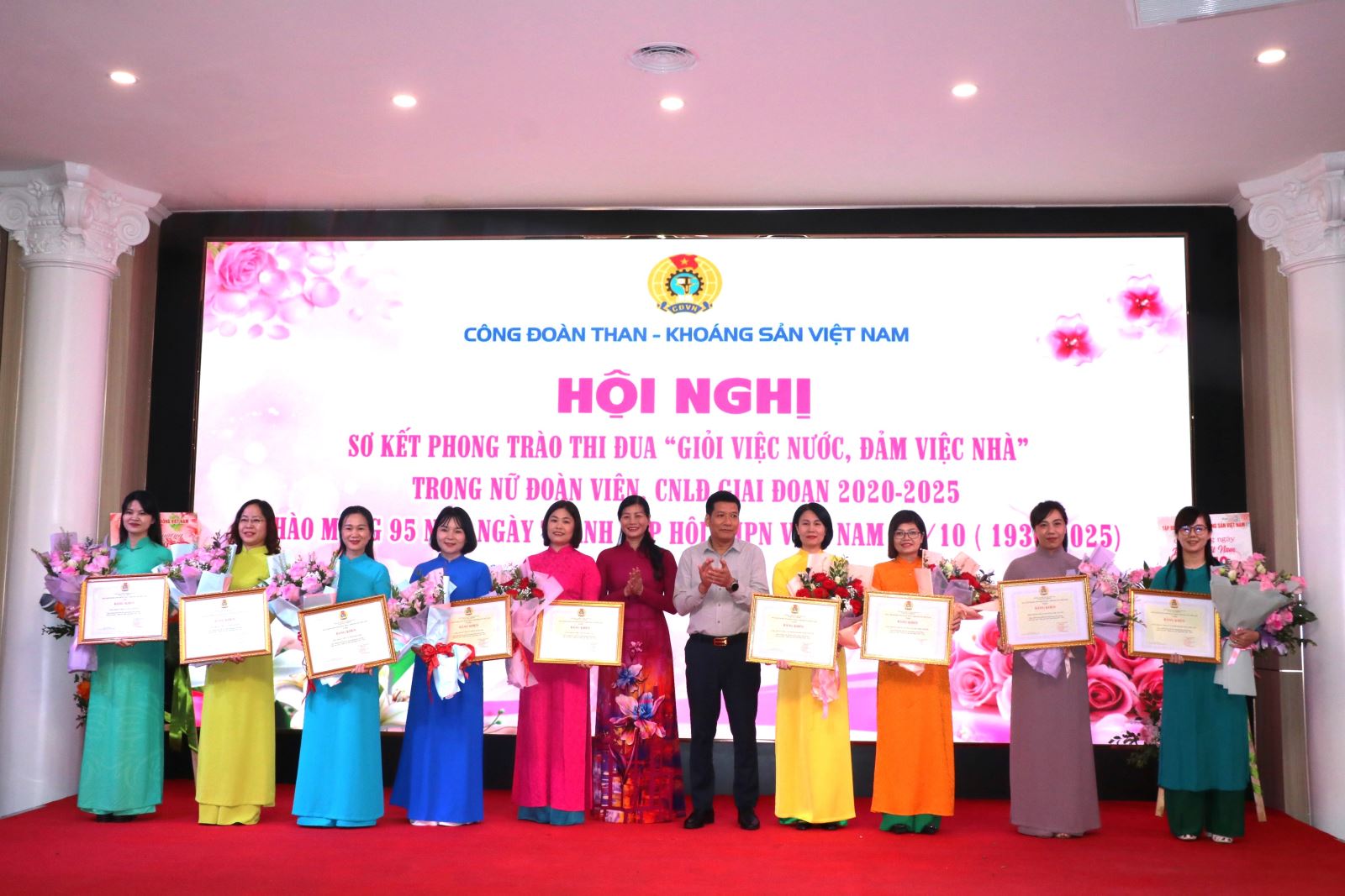Nhân dịp này, Công đoàn TKV đã tuyên dương, khen thưởng 30 tập thể, 95 cá nhân có thành tích tiêu biểu trong phong trào thi đua “Giỏi việc nước, đảm việc nhà” giai đoạn 2020-2025; trao tổng kinh phí 1 tỉ 290 triệu đồng cho 12 Công đoàn cơ sở để triển khai Đề án hỗ trợ nữ CNLĐ khó khăn phát triển kinh tế gia đình (giai đoạn 4).