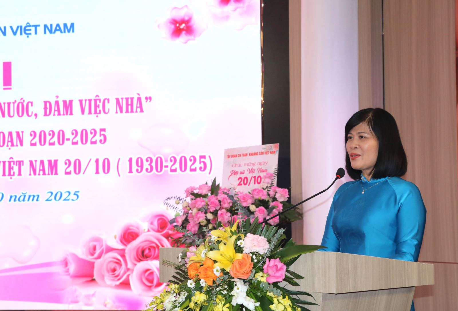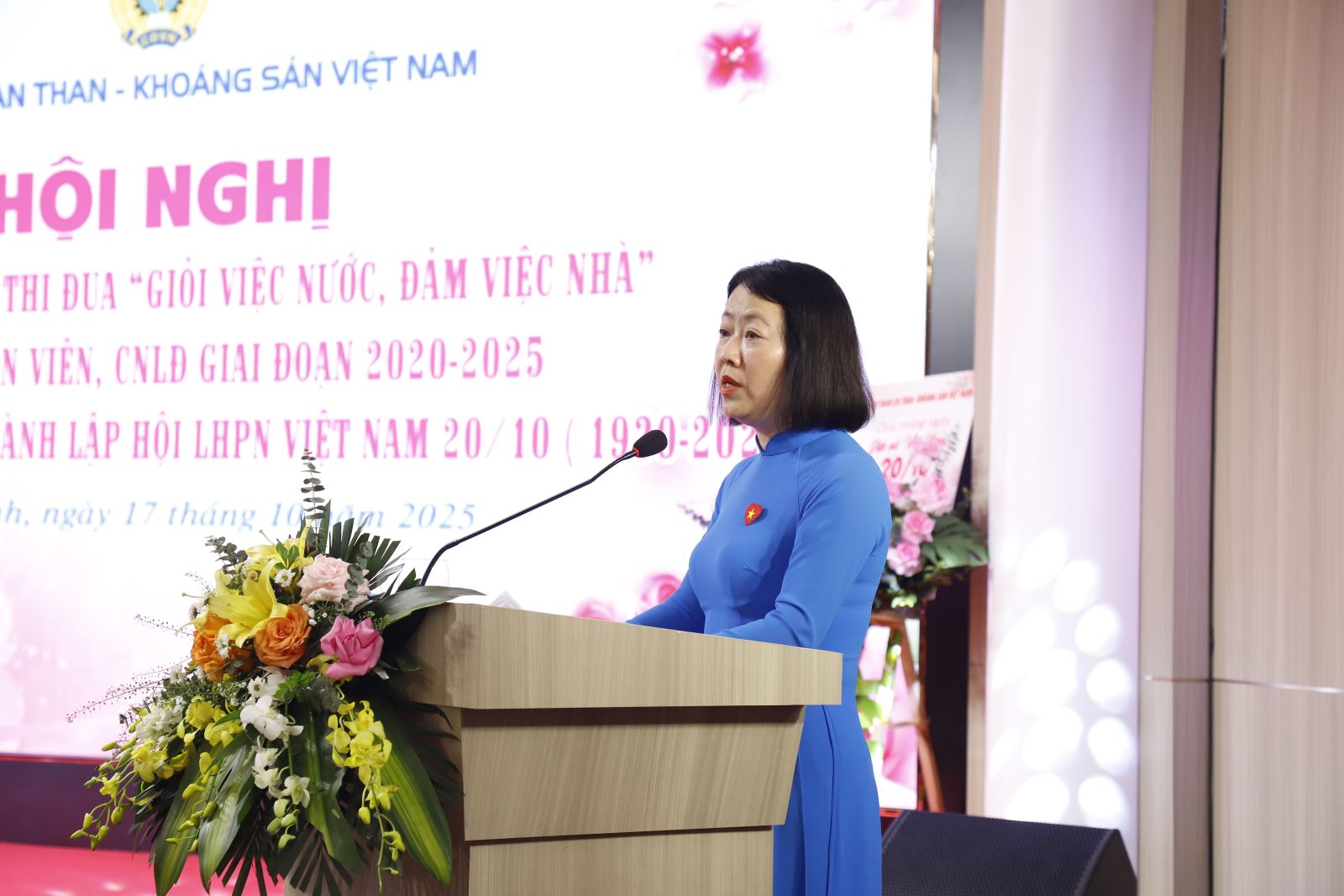Phát biểu chỉ đạo tại hội nghị, đồng chí Đỗ Hồng Vân - Ủy viên Đoàn chủ tịch, Phó Trưởng Ban Quan hệ Lao động, Tổng Liên đoàn Lao động Việt Nam ghi nhận và đánh giá cao những kết quả toàn diện của phong trào “Giỏi việc nước, đảm việc nhà” trong nữ CNVCLĐ ngành Than – Khoáng sản. Đồng chí nhấn mạnh, trong giai đoạn tới, các cấp công đoàn TKV cần tiếp tục đổi mới nội dung, phương thức hoạt động; phát huy sáng kiến, nhân rộng mô hình hiệu quả, quan tâm bồi dưỡng đội ngũ cán bộ nữ công; chăm lo tốt hơn đời sống, việc làm, thu nhập cho nữ CNVCLĐ.