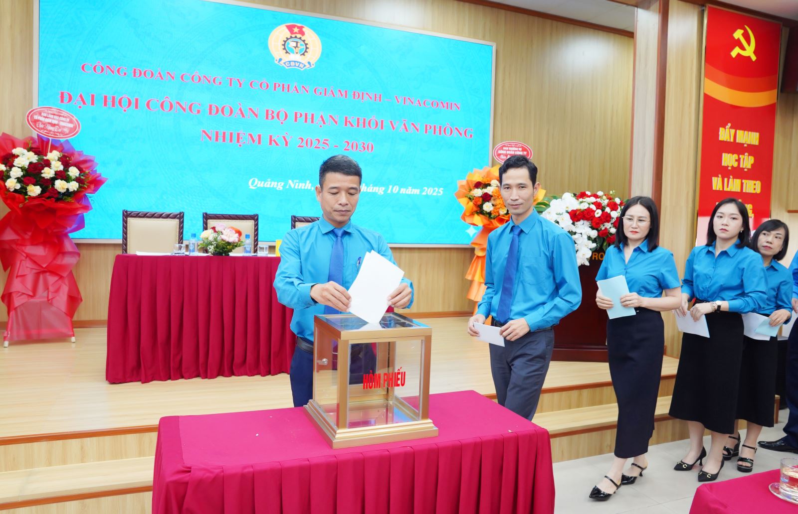 Với tinh thần dân chủ, đoàn kết và trách nhiệm cao, Đại hội đã tín nhiệm bầu ra Ban Chấp hành Công đoàn bộ phận khối Văn phòng nhiệm kỳ 2025-2030 gồm 03 đồng chí. Đại hội cũng đã bầu đoàn đại biểu đi dự Đại hội đại biểu Công đoàn Công ty Cổ phần Giám định lần thứ XI gồm 14 đại biểu chính thức và 02 đại biểu dự khuyết.