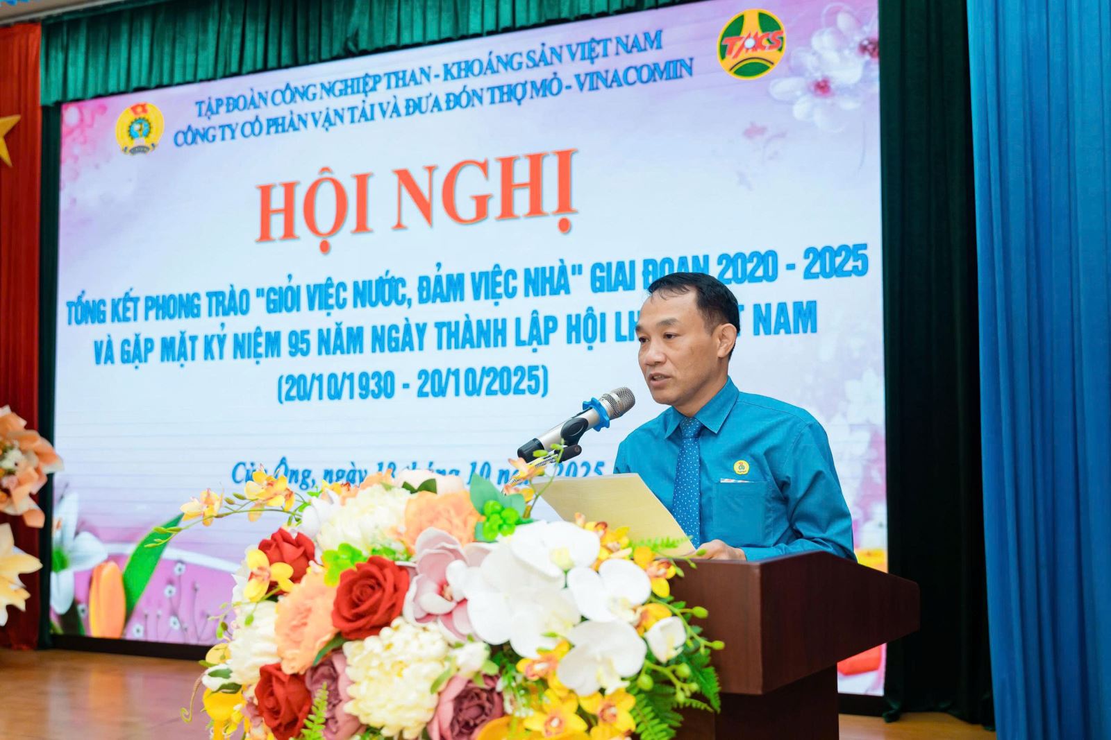 Ngày 18/10/2025, tại Hội trường Công ty Cổ phần Vận tải và Đưa đón Thợ mỏ, Hội nghị tổng kết 5 năm phong trào “Giỏi việc nước, đảm việc nhà” giai đoạn 2020-2025 và gặp mặt kỷ niệm 95 năm Ngày thành lập Hội Liên hiệp Phụ nữ Việt Nam (20/10/1930-20/10/2025) đã diễn ra trong không khí đầm ấm, sôi nổi và tràn đầy niềm tự hào.