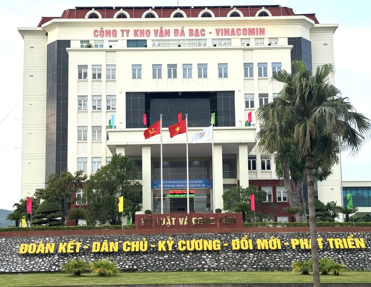 Khẩu hiệu tuyên truyền tại khu trụ sở nhà Điều hành sản xuất của Công ty