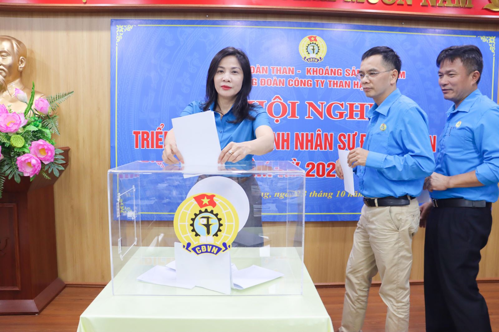 Tại hội nghị, các đại biểu đã được nghe phổ biến, quán triệt hướng dẫn của Công đoàn Than - Khoáng sản Việt Nam về công tác chuẩn bị nhân sự đại hội công đoàn các cấp; đồng thời tiến hành các bước giới thiệu, thảo luận, bỏ phiếu tín nhiệm nhân sự tham gia Ban thường vụ, Ban Chấp hành, Ủy ban Kiểm tra Công đoàn Công ty khóa X theo đúng quy trình, đảm bảo nguyên tắc dân chủ, công khai, khách quan và đúng quy định của Điều lệ Công đoàn Việt Nam.