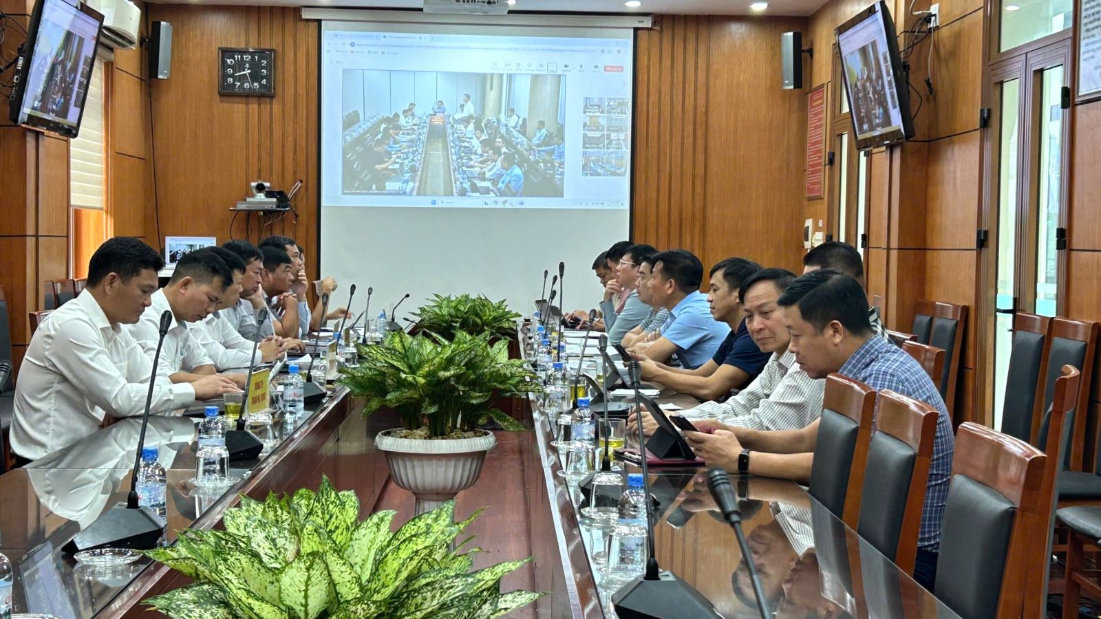 Quang cảnh hội nghị tại điểm cầu Công ty Kho vận và cảng Cẩm Phả