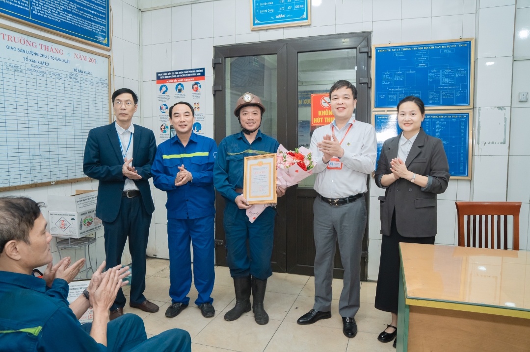 Các đồng chí lãnh đạo Đảng ủy, chuyên môn, Công đoàn và Đoàn Thanh niên Công ty đã trực tiếp đến tận nơi sản xuất, trao thưởng và chúc mừng những thợ mỏ tiêu biểu ngay tại nhà giao ca các phân xưởng.