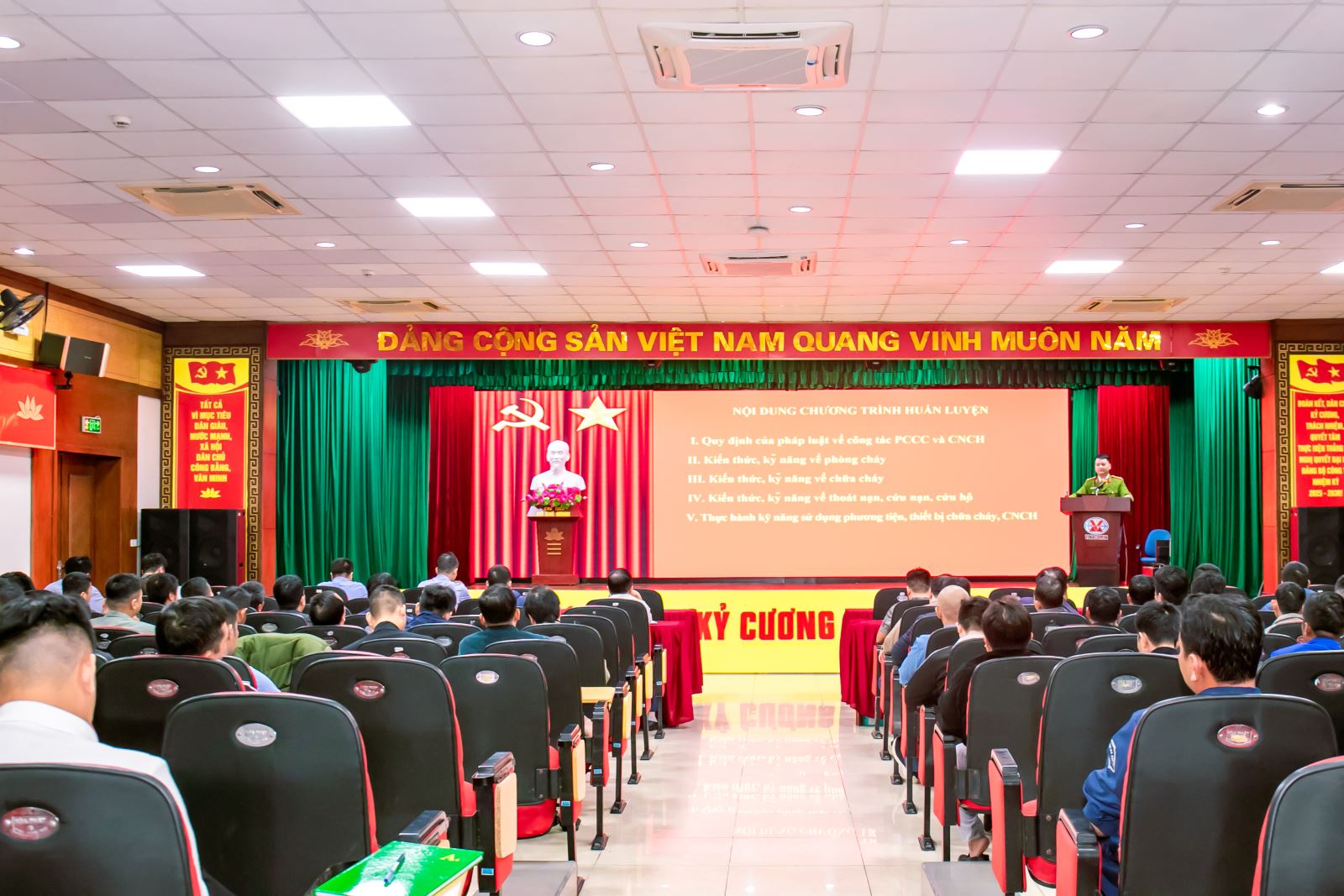 Tham dự lớp huấn luyện bồi dưỡng nghiệp vụ, kiến thức về PCCC – CNCH gồm 245 đồng chí là Giám đốc, Phó Giám đốc Công ty, Trưởng phòng, Phó phòng, Quản đốc, Đội trưởng và các đội viên lực lượng chữa cháy tại các đơn vị.