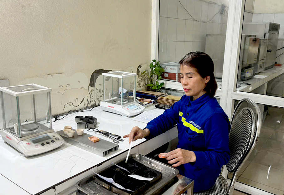 Cô công nhân lấy mẫu hóa nghiệm phân tích than Nguyễn Thị Nga lại được biết đến là gương sáng có sức lan tỏa trong các phong trào thi đua tại phòng KCS