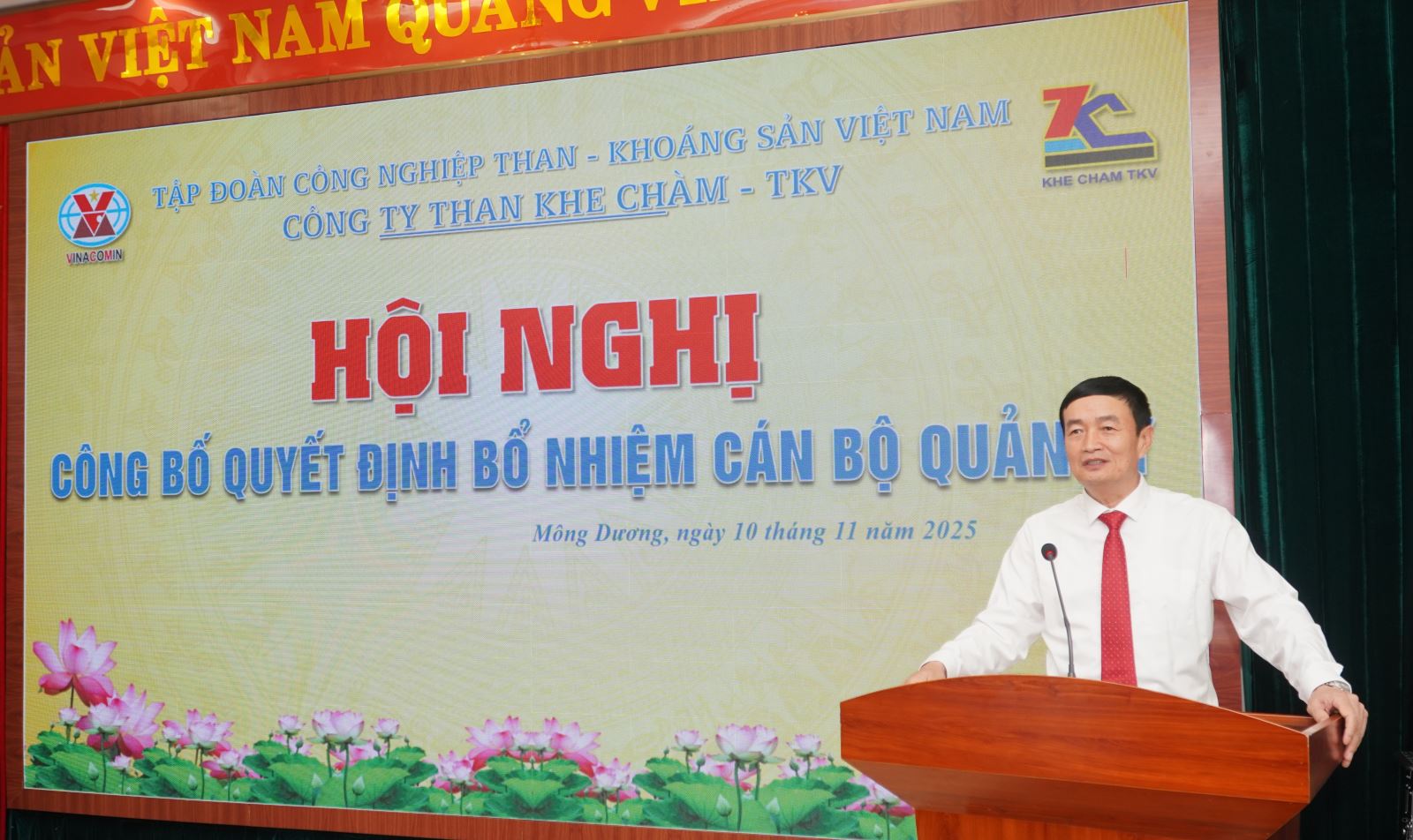 Ngày 10/11/2025, Công ty Than Khe Chàm tổ chức hội nghị công bố quyết định bổ nhiệm PGĐ Công ty. Được sự ủy quyền của Tổng Giám đốc Tập đoàn Công nghiệp Than - Khoáng sản Việt Nam, đồng chí Lê Đình Dương Bí thư Đảng ủy - Giám đốc Công ty đã trao quyết định bổ nhiệm đồng chí Phan Đình Thản - Trưởng phòng TCNS giữ chức vụ PGĐ Công ty; đồng chí Nguyễn Mạnh Đô - Phó phòng KCM được bổ nhiệm giữ chức Trưởng phòng TCNS từ ngày 10/11/2025.