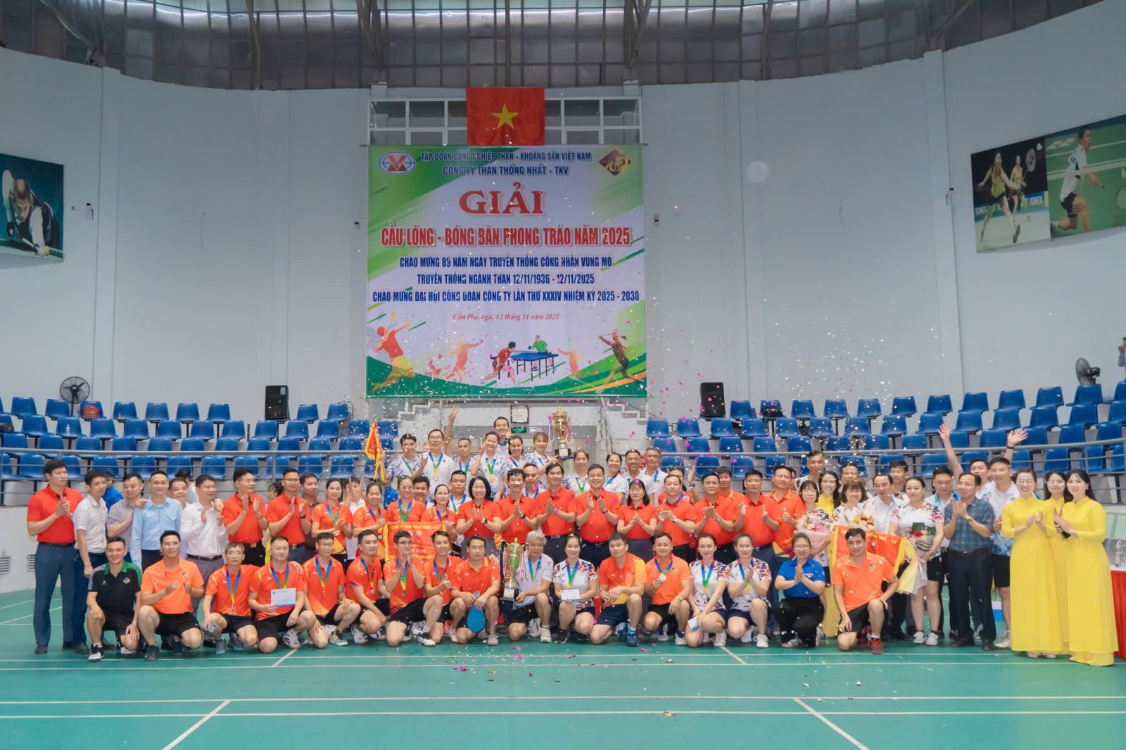 Sau một ngày tranh tài với những pha cầu hay, những pha bóng đẹp, cùng tinh thần thi đấu thể thao đoàn kết, trung thực, hết mình của các VĐV, sự cổ vũ cuồng nhiệt của các khán giả. Giải cầu lông, bóng bàn phong trào Công ty Than Thống Nhất năm 2025 đã diễn ra thành công tốt đẹp, để lại nhiều ấn tượng, khoảnh khắc đẹp và cảm xúc bùng nổ. Kết thúc Giải, Ban tổ chức đã trao huy chương, cờ và cúp toàn đoàn cho các đơn vị sau: Môn bóng bàn: Cờ và cúp Nhất toàn đoàn: Đội Liên quân 6; Cờ Nhì toàn đoàn: Đội Liên quân 1; Cờ Ba toàn đoàn: Đội Liên quân 3; Môn cầu lông: Cờ và cúp Nhất toàn đoàn: Đội Liên quân 6; Cờ Nhì toàn đoàn: Đội Liên quân 5; Cờ Ba toàn đoàn: Đội Liên quân 2.