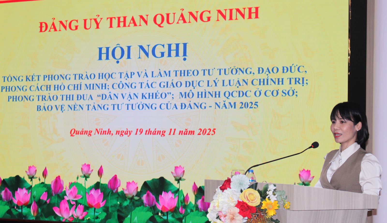 Chiều 19/11, Đảng ủy Than Quảng Ninh (TQN) tổ chức Hội nghị tổng kết phong trào “Học tập và làm theo tư tưởng, đạo đức, phong cách Hồ Chí Minh”; công tác giáo dục lý luận chính trị; phong trào thi đua “Dân vận khéo”, hoạt động của Ban chỉ đạo 35; xây dựng hình ảnh “Người thợ mỏ - Người chiến sĩ” năm 2025; phương hướng, nhiệm vụ trọng tâm năm 2026.