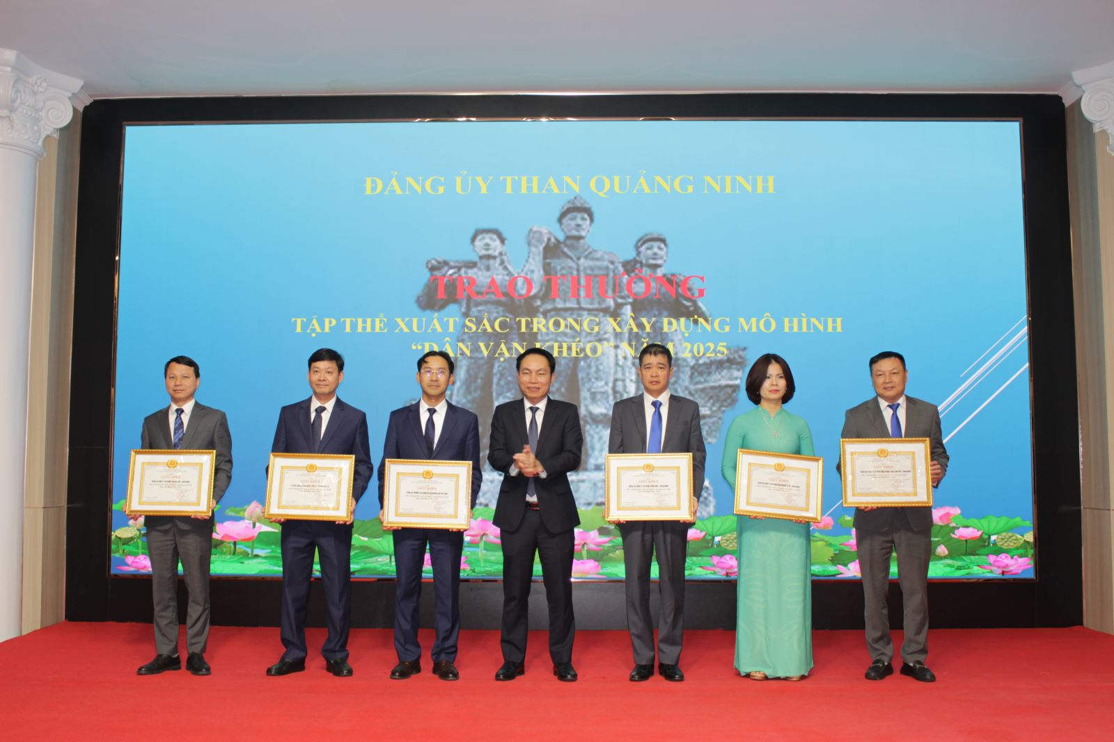 Nhân dịp này, Đảng ủy Than Quảng Ninh đã công bố quyết định và tổ chức trao bằng khen của Ban Tuyên giáo - Dân vận Trung ương cho Chi bộ Phòng KCM thuộc Đảng bộ Công ty CP Than Hà Lầm đã có thành tích trong công tác; Đảng ủy Than Quảng Ninh tuyên dương, khen thưởng các tập thể đạt thành tích xuất sắc trong phong trào thi đua “Học tập và làm theo tư tưởng, đạo đức, phong cách Hồ Chí Minh”, xây dựng mô hình “Dân vận khéo”, xây dựng hình ảnh “Người thợ mỏ - Người chiến sĩ” năm 2025; tuyên dương, khen thưởng các cá nhân đạt danh hiệu “Người thợ mỏ - Người chiến sĩ” xuất sắc năm 2025.