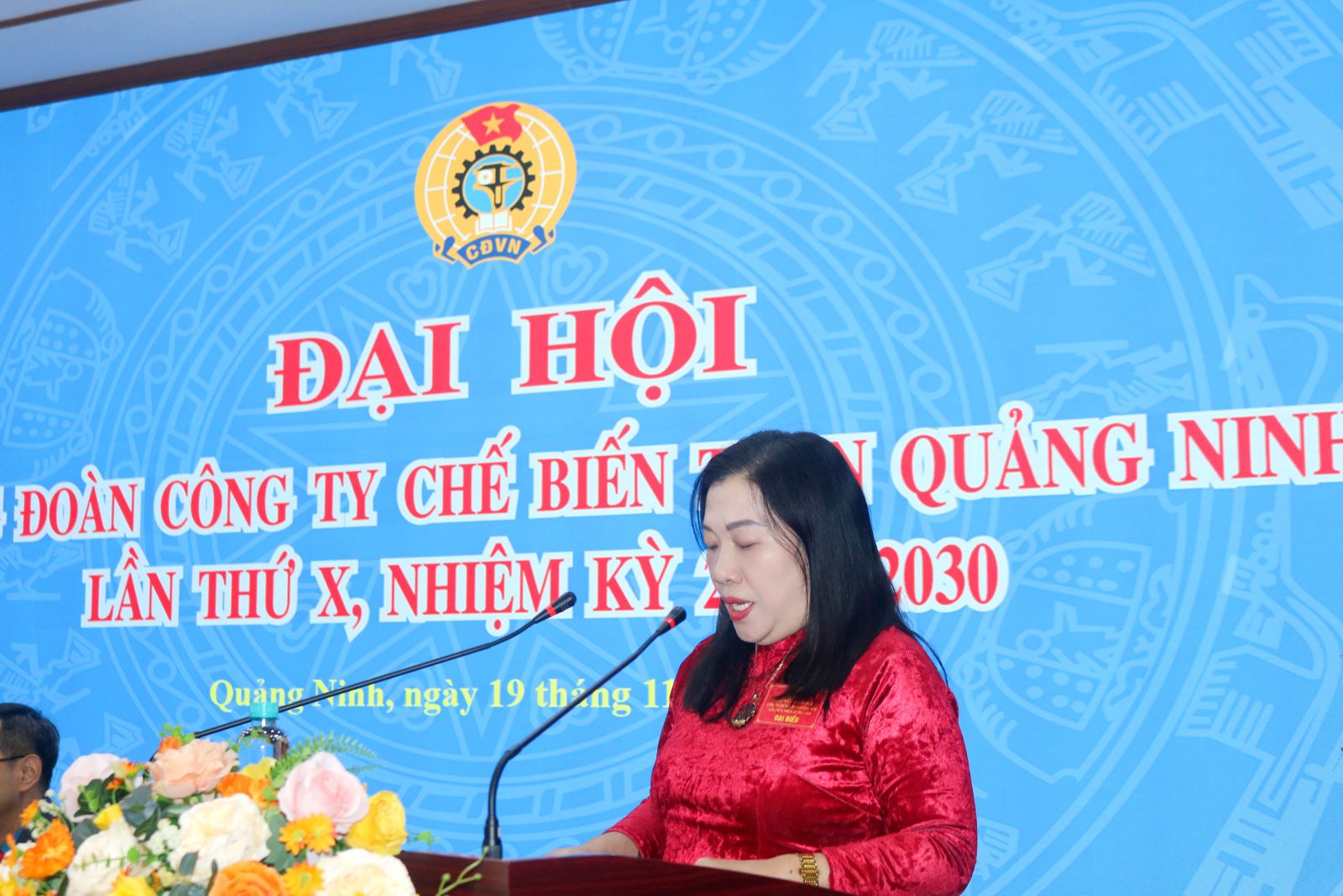 Tại Đại hội, đồng chí Nguyễn Thị Kim Liên - Chủ tịch Công đoàn Công ty khoá IX, thay mặt Đoàn Chủ tịch trình bày Báo cáo tổng kết hoạt động Công đoàn giai đoạn 2023 - 2025. Theo đó, báo cáo đã phân tích rõ những thuận lợi, khó khăn đồng thời đưa ra những giải pháp cụ thể với mục tiêu nâng cao hơn nữa hiệu quả hoạt động tổ chức Công đoàn. Trong nhiệm kỳ qua mặc dù điều kiện sản xuất còn gặp nhiều khó khăn song Ban Chấp hành Công đoàn Công ty luôn bám sát sự chỉ đạo của Công đoàn TKV và Đảng ủy Công ty, căn cứ vào tình hình thực tế sản xuất và phong trào CNVCLĐ, Công đoàn Công ty đã chủ động đổi mới về cả nội dung và phương thức hoạt động, tích cực tuyên truyền CBCNV, NLĐ đoàn kết, vượt khó, phối hợp với chuyên môn triển khai hiệu quả các hoạt động, đã thực hiện thắng lợi Nghị quyết Đại hội Công đoàn lần thứ IX đề ra. Cụ thể, hầu hết các chỉ tiêu đề ra đều cơ bản hoàn thành và hoàn thành vượt mức: kết nạp được 56 người lao động vào tổ chức công đoàn; giới thiệu sang đảng kết nạp 16 đoàn viên ưu tú vào Đảng; … Về lãnh đạo thực hiện kế hoạch SXKD: than mua thực hiện 12,3 triệu tấn; than tiêu thụ thực hiện: 12,2 triệu tấn. Các chỉ tiêu doanh thu, lợi nhuận, thu nhập bình quân cơ bản đều hoàn thành kế hoạch Tập đoàn TKV giao.