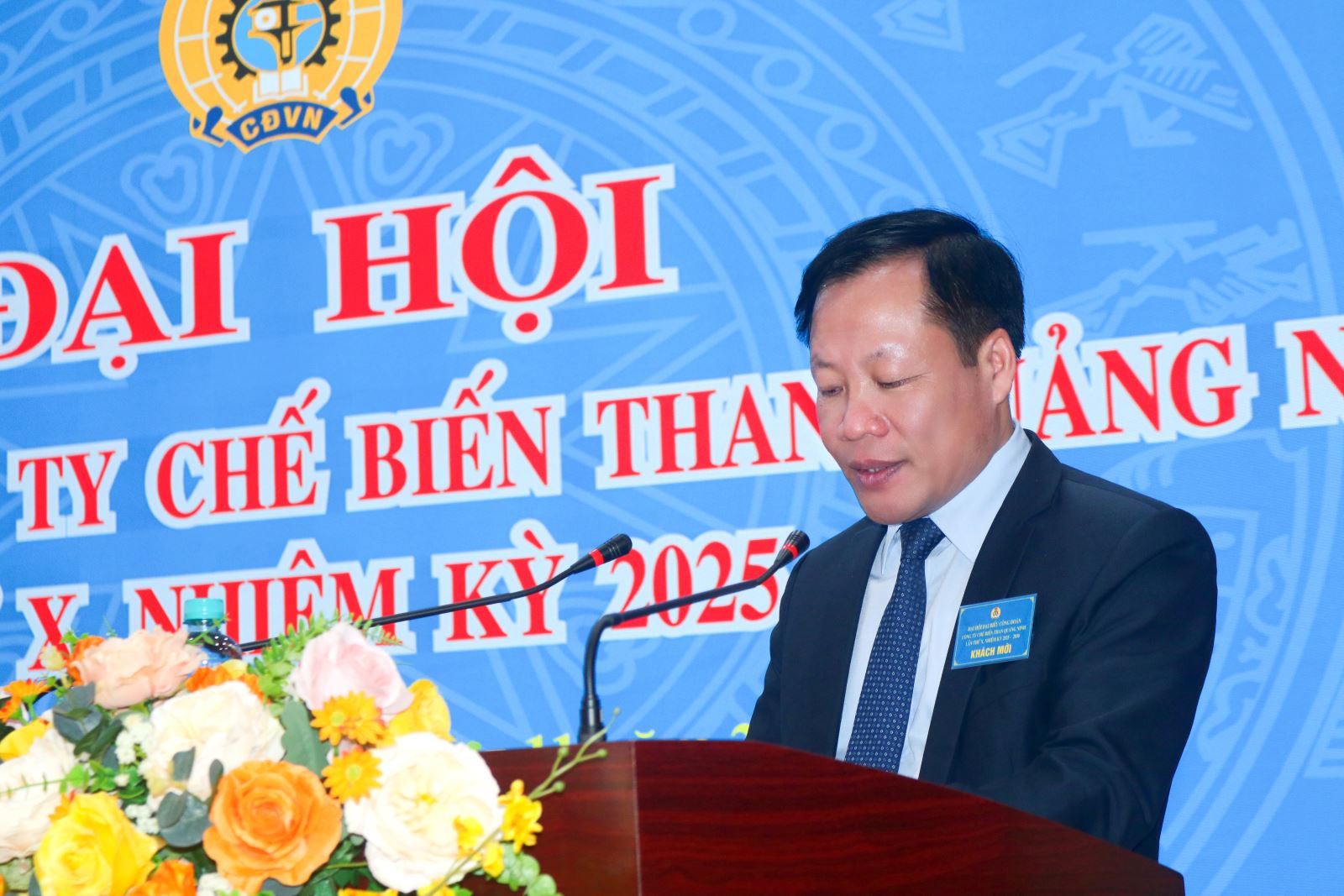 Phát biểu tại Đại hội, đồng chí Nguyễn Trung Hiếu - Phó Chủ tịch Công đoàn TKV đã ghi nhận, biểu dương những kết quả mà Công đoàn Công ty Chế biến than Quảng Ninh đạt được trong nhiệm kỳ qua. Đồng chí đánh giá cao tinh thần đoàn kết của CNVCLĐ Công ty, đồng thời đề nghị Công đoàn Công ty tập trung thực hiện tốt các nhiệm vụ trong nhiệm kỳ 2025 - 2030: Bám sát chiến lược phát triển, kế hoạch SXKD của Công ty, phát huy vai trò, chức năng của Công đoàn trong các hoạt động chung của Công ty; phát huy vai trò kiểm tra giám sát, tham gia quản lý của Công đoàn, quan tâm cải thiện điều kiện làm việc, chăm lo đời sống, phúc lợi cho NLĐ ngày càng tốt hơn; xây dựng đội ngũ CNVCLĐ đáp ứng yêu cầu nhiệm vụ, phấn đấu hoàn thành thắng lợi Nghị quyết Đại hội Công đoàn Công ty khoá X, nhiệm kỳ 2025 - 2030.