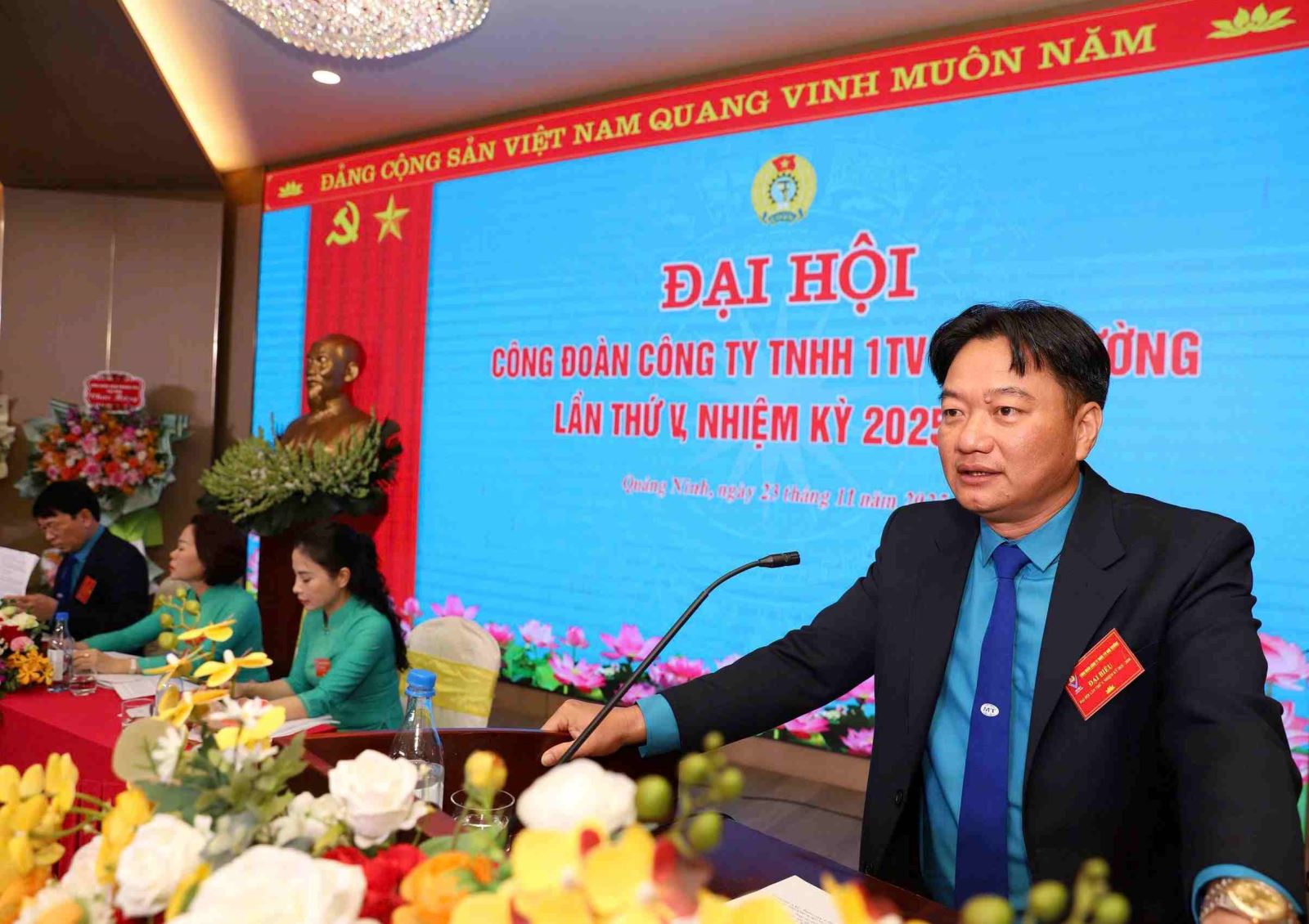Phát biểu chỉ đạo đại hội, đồng chí Vũ Văn Hưng - Bí thư Đảng ủy, Giám đốc Công ty ghi nhận và biểu dương những thành tích mà Công đoàn Công ty đã đạt được trong nhiệm kỳ qua. Đồng thời đề nghị nhiệm kỳ tới Công đoàn cần tiếp tục bám sát sự lãnh đạo của cấp ủy Đảng và công đoàn cấp trên, chủ động nghiên cứu, tham mưu kịp thời, tổ chức các hoạt động công đoàn phù hợp với tình hình, đặc điểm và nhiệm vụ chính trị của Công ty. Quan tâm chăm lo, bảo vệ quyền, lợi ích chính đáng của đoàn viên; cụ thể hóa các phong trào thi đua, các cuộc vận động do tổ chức công đoàn phát động.