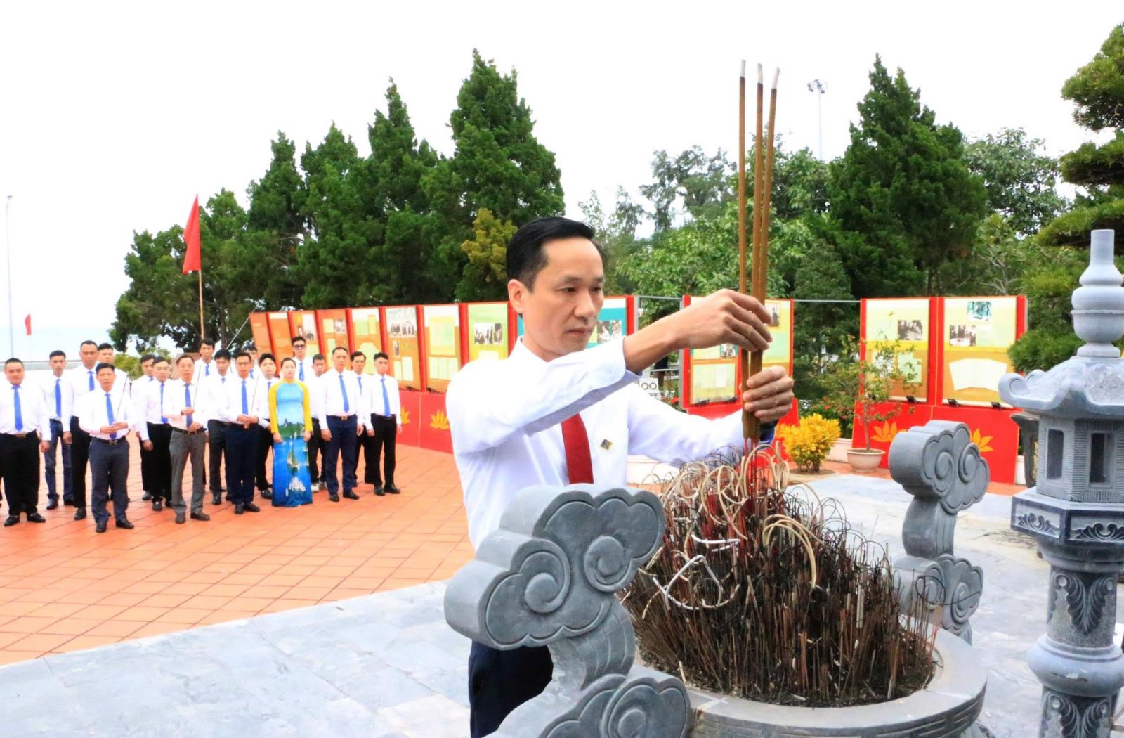 Cán bộ, đảng viên Công ty Than Thống Nhất dâng hương tại khu lưu niệm Chủ tịch Hồ Chí Minh tại đặc khu Cô Tô