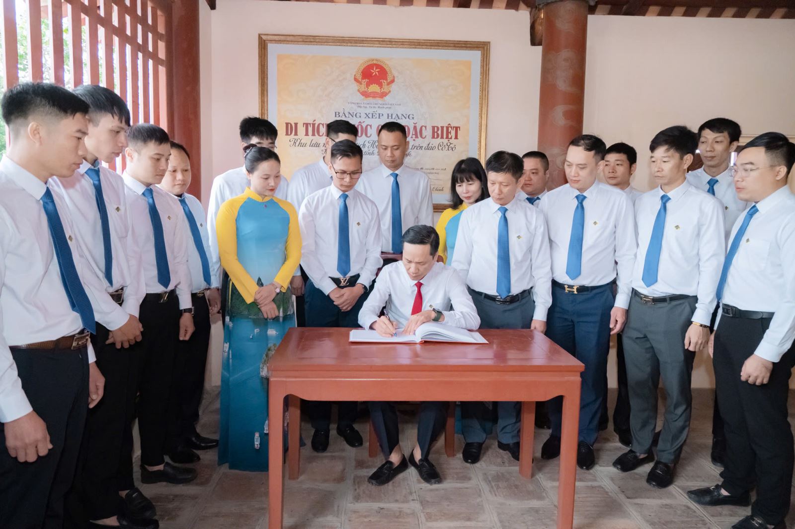 Đồng chí Đào Văn Chính - Phó Bí thư Đảng ủy Công ty ghi sổ lưu niệm tại Đền thờ Chủ tịch Hồ Chí Minh