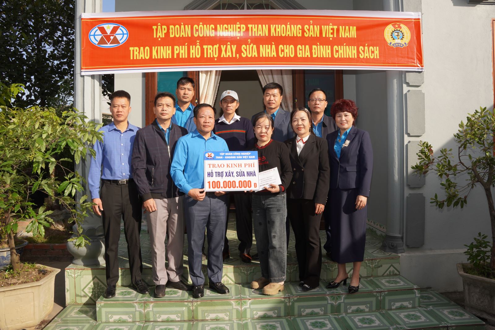 Tại các gia đình, Công đoàn Than - Khoáng sản Việt Nam đã thăm hỏi, động viên và trao hỗ trợ kinh phí sửa nhà cho 02 gia đình chính sách của Công ty Địa chất mỏ với số tiền 100 triệu đồng/gia đình.