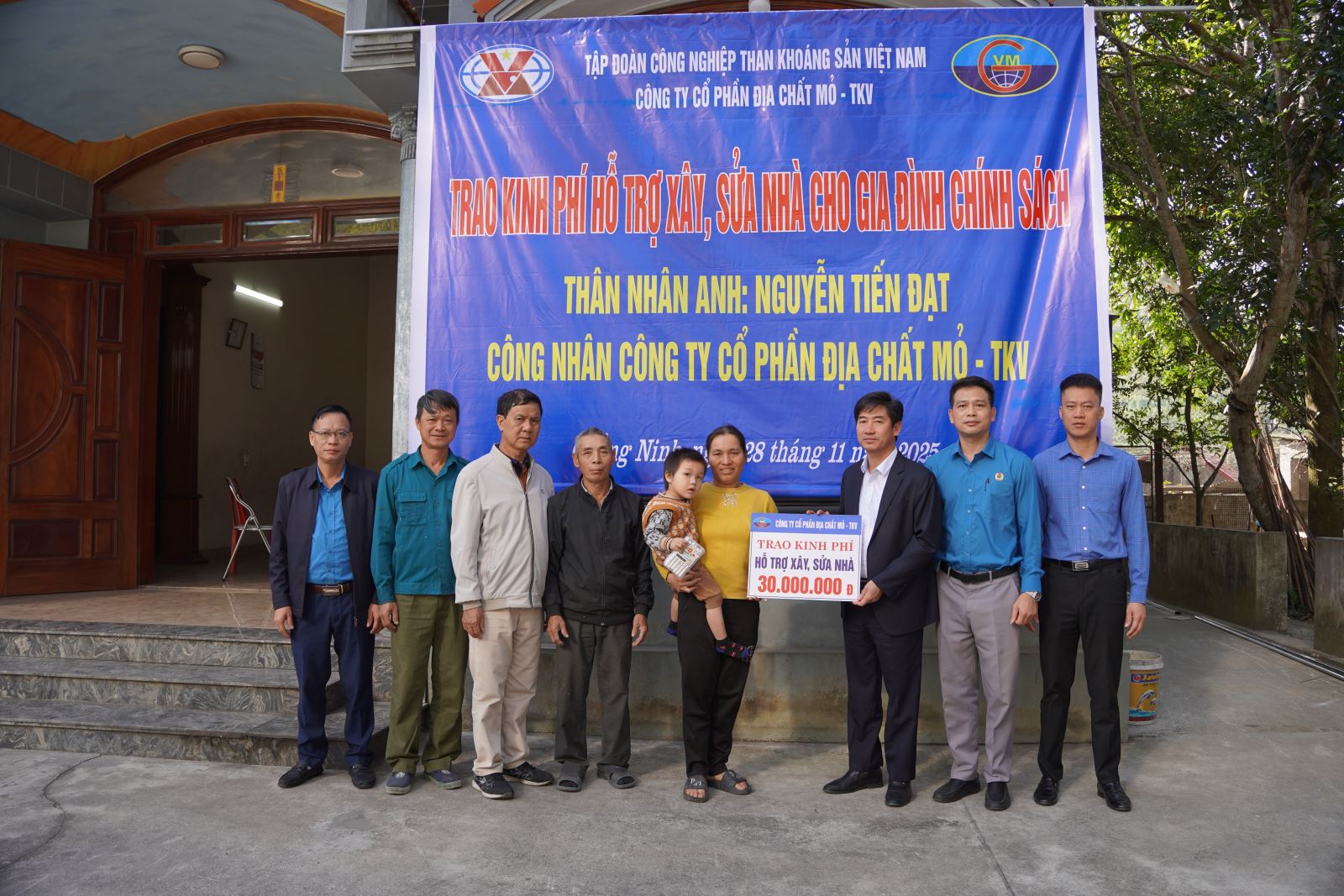 Ngày 28/11/2025, đồng chí Nguyễn Trung Hiếu, Phó Chủ tịch Công đoàn Than - Khoáng sản Việt Nam (TKV) cùng đại diện các Ban chuyên đề Công đoàn TKV đã tới thăm, trao tiền hỗ trợ sửa nhà cho các gia đình chính sách của Công ty CP Địa chất mỏ.