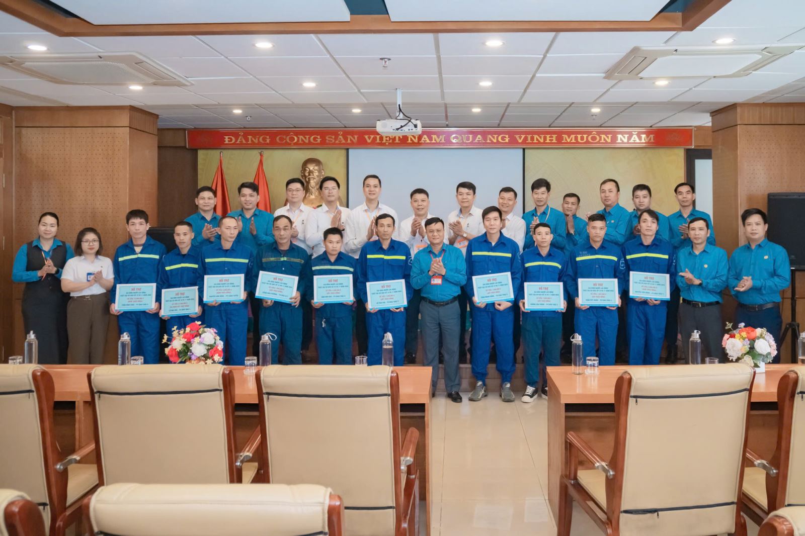 Các công nhân phân xưởng khai thác, đào lò, phục vụ phụ trợ nhận quà hỗ trợ