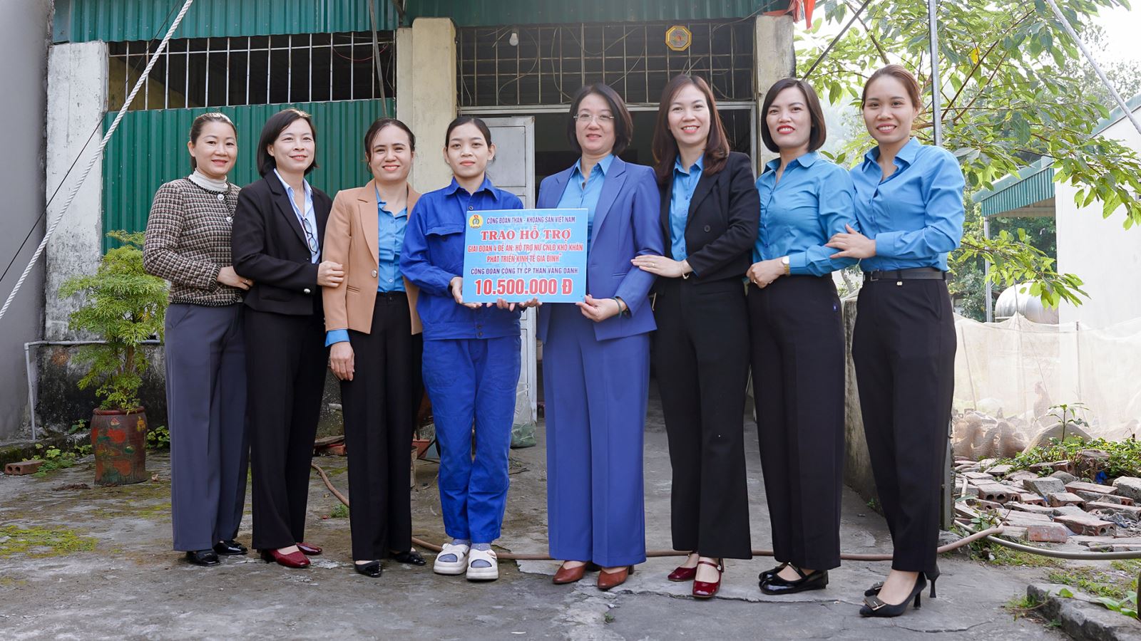 Trao hỗ trợ cho chị Nguyễn Thị Thủy - công nhân PX Tuyển than (bản thân sức khỏe yếu, 3 con nhỏ đang đi học, ở cùng bà nội hay đau ốm, không có lương hưu)
