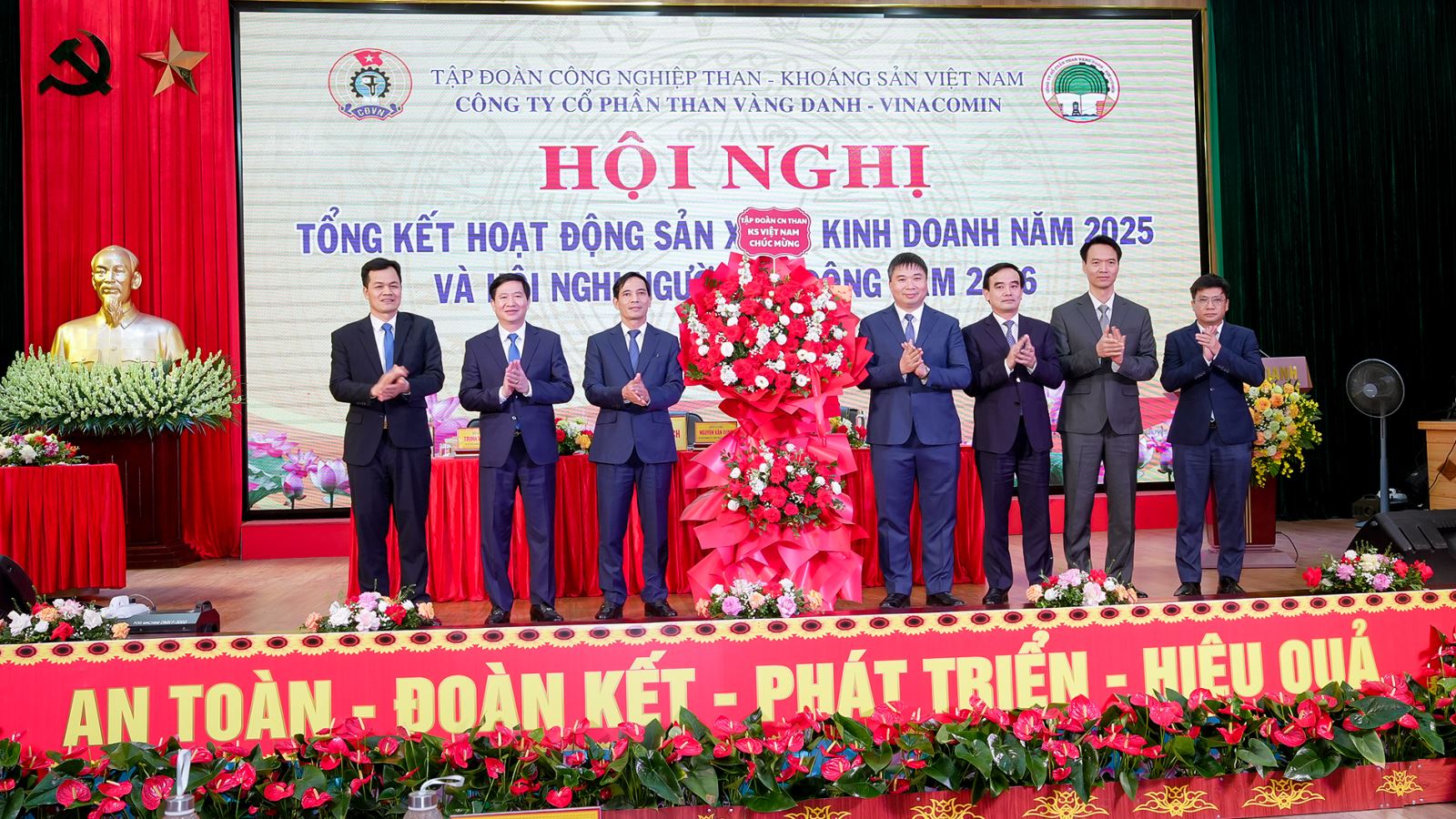 Các đồng chí lãnh đạo Tập đoàn TKV tặng hoa chúc mừng Hội nghị