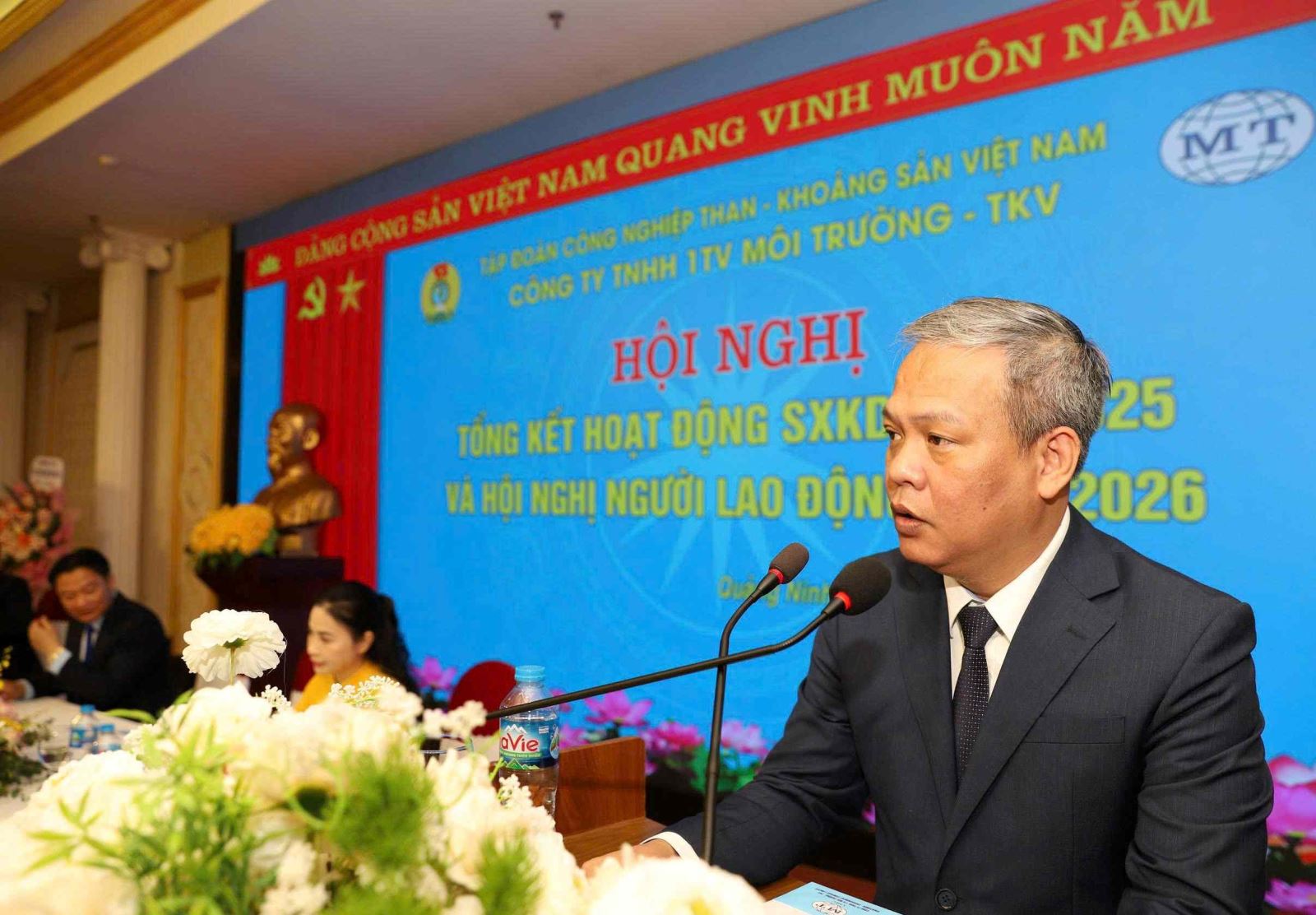Ngày 12/12/2025, tại Hội trường khách sạn Hải Yến, Công ty Môi trường đã long trọng tổ chức Hội nghị tổng kết hoạt động sản xuất kinh doanh (SXKD) năm 2025 và Hội nghị người lao động năm 2026. Đồng chí Nguyễn Huy Nam - Bí thư Đảng ủy Than Quảng Ninh, Phó TGĐ Tập đoàn TKV dự và chỉ đạo hội nghị; cùng dự có các đồng chí Trịnh Hiến Thành - Kiểm soát viên Nhà nước, đại diện lãnh đạo Công đoàn TKV, Ban KTTC, Ban Môi trường. Đồng chí Trần Tuấn Anh - Chủ tịch Công ty, đồng chí Vũ Văn Hưng - Bí thư Đảng ủy, Giám đốc Công ty và đồng chí Trịnh Thị Lan Anh - Chủ tịch Công đoàn Công ty đồng chủ trì hội nghị.