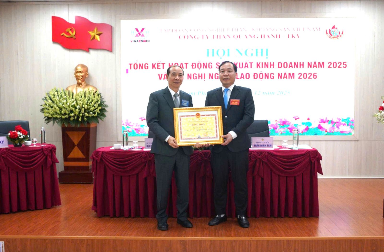 Thành viên HĐTV Tập đoàn Vũ Thành Lâm chúc mừng và biểu dương những nỗ lực, cố gắng rất cao và thành tích Công ty Than Quang Hanh đạt được trong năm 2025