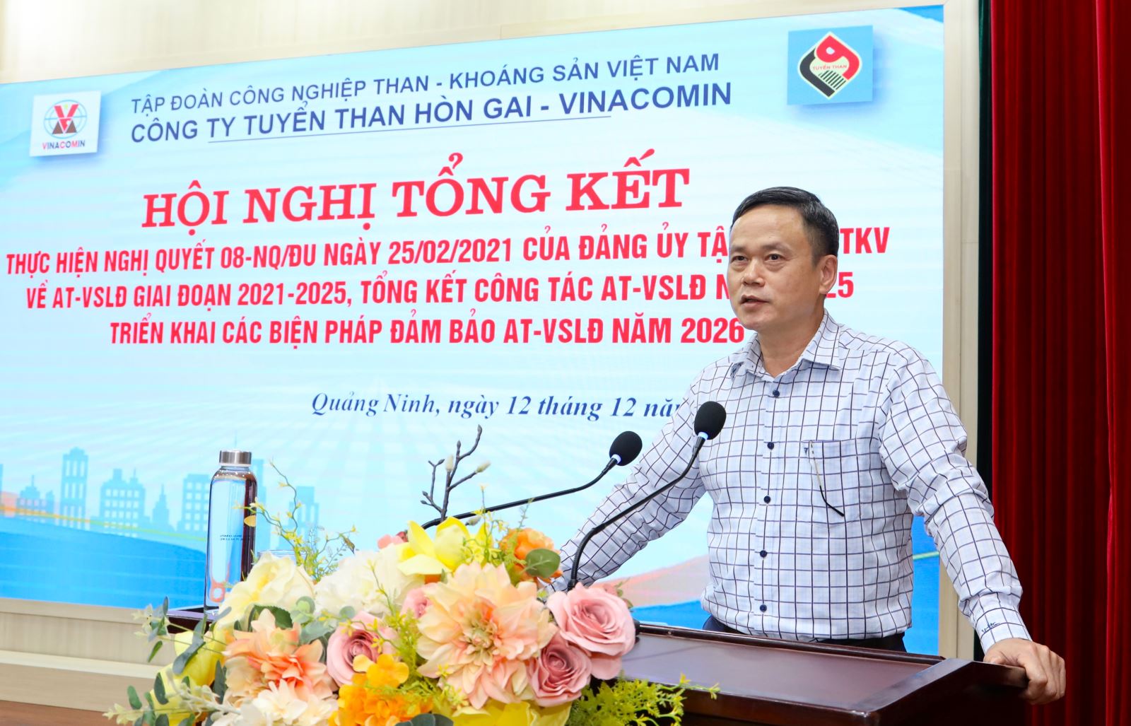 Chiều ngày 12/12, Công ty Tuyển than Hòn Gai tổ chức Hội nghị tổng kết thực hiện Nghị quyết số 08/NQ-ĐU ngày 25/02/2021 của Đảng ủy Tập đoàn TKV về tăng cường lãnh đạo, chỉ đạo công tác an toàn - vệ sinh lao động (ATVSLĐ) giai đoạn 2021-2025, đồng thời tổng kết công tác ATVSLĐ, PCCC và CNCH năm 2025.