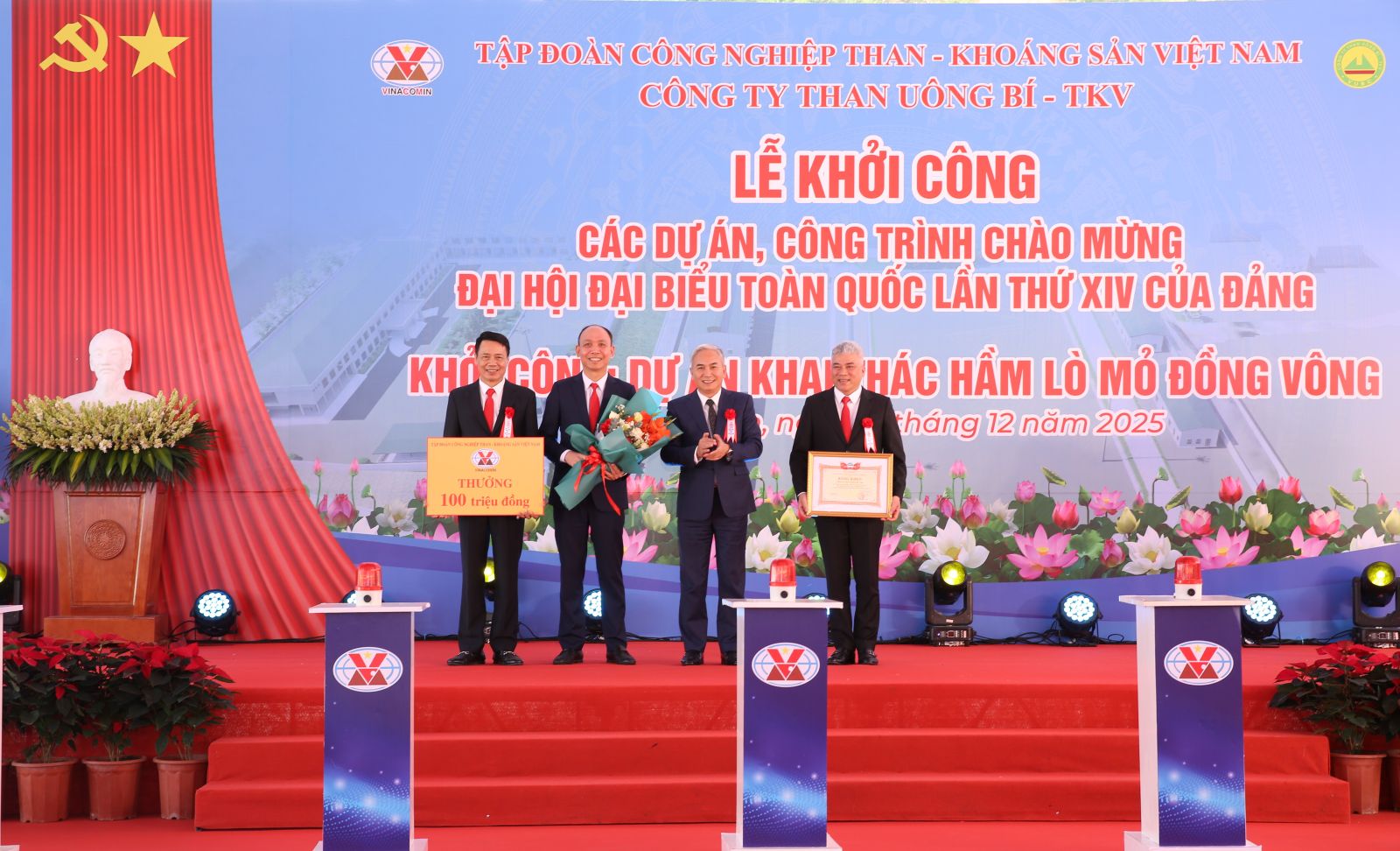 Tổng giám đốc Tập đoàn tặng Bằng khen kèm theo tiền thưởng 100.000.000 đồng cho Công ty Than Uông Bí - TKV đã hoàn thành mục tiêu thi đua và tổ chức Lễ khởi công Dự án Khai thác hầm lò mỏ Đồng Vông, Công trình chào mừng Đại hội đại biểu toàn quốc lần thứ XIV của Đảng
