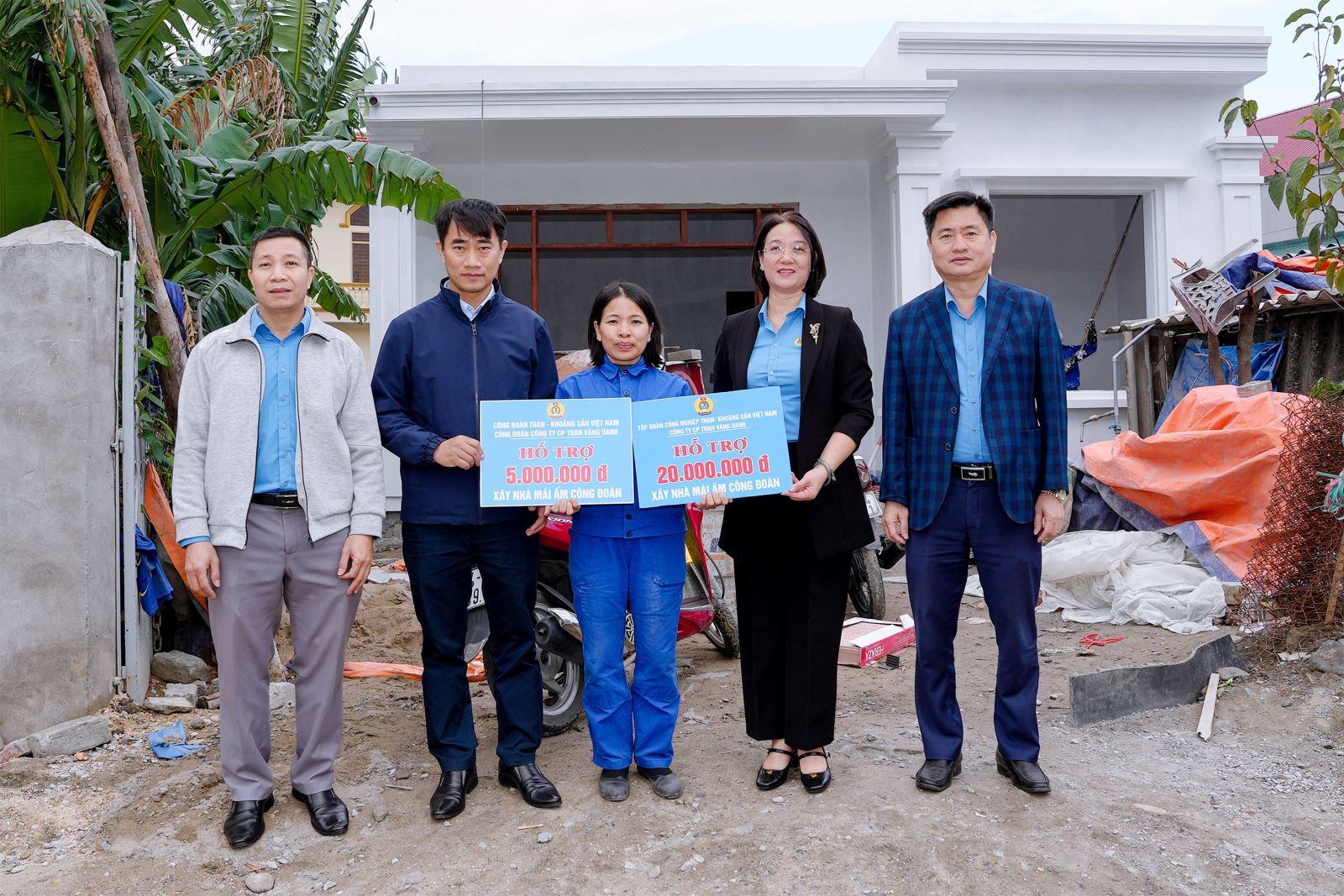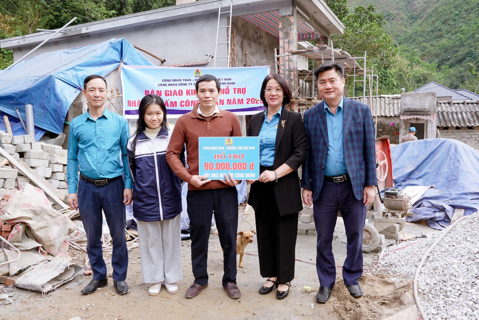 Thực hiện Quyết định của Công đoàn Than - Khoáng sản Việt Nam về hỗ trợ nhà ở từ Quỹ “Mái ấm Công đoàn” năm 2025. Đến nay có 05 gia đình được hỗ trợ xây mới nhà ở, mỗi gia đình được hỗ trợ 90 triệu đồng từ Quỹ “Mái ấm Công đoàn” TKV, 20 triệu đồng từ Quỹ Công ty và 5 triệu đồng từ Quỹ Công đoàn Công ty; 01 gia đình còn lại được hỗ trợ kinh phí từ nguồn Quỹ Công ty và Quỹ Công đoàn Công ty, kịp thời giúp người lao động vượt qua khó khăn về nhà ở.