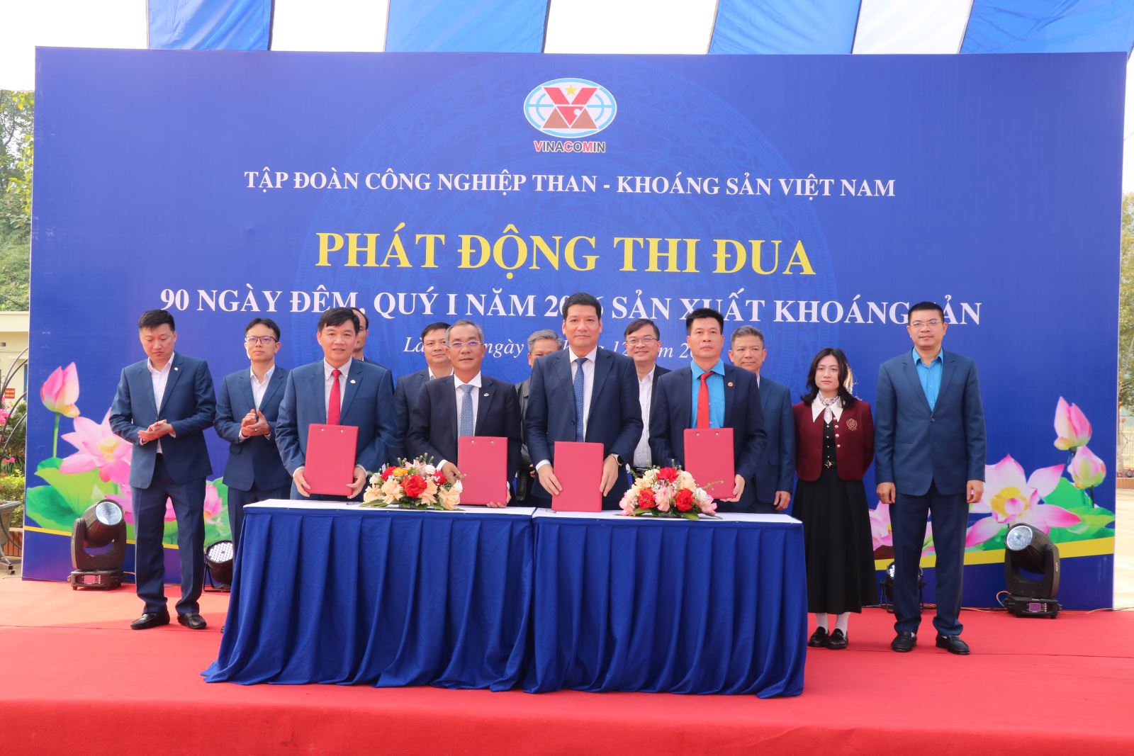 Lãnh đạo Công đoàn TKV, Tổng công ty Khoáng sản và các đơn vị tiến hành ký giao ước thi đua