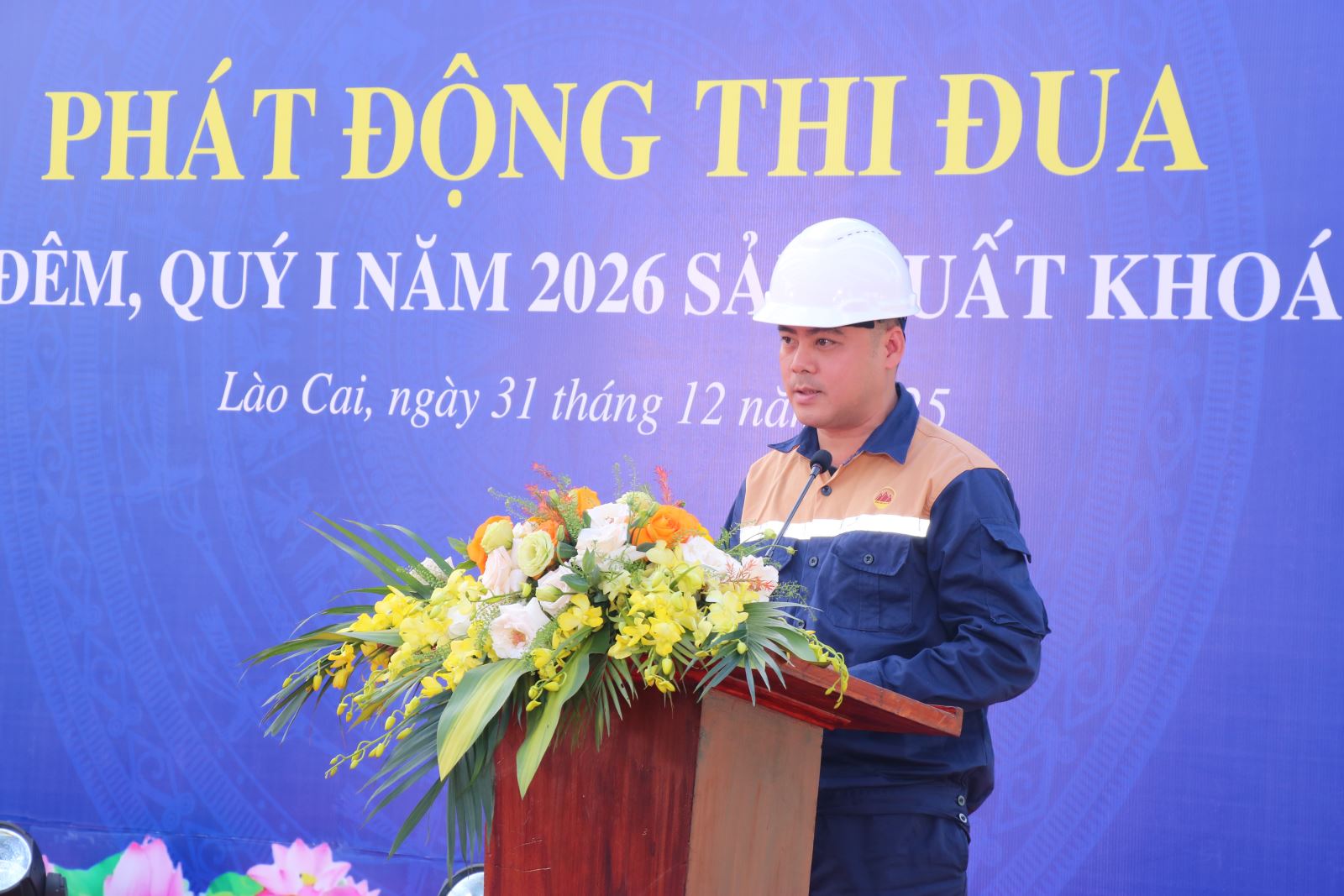 Đại diện lực lượng công nhân, anh Vũ Văn Trưởng - Công nhân Phân xưởng Cơ điện - Tuyển khoáng, Công ty CP Đồng Tả Phời bày tỏ niềm vinh dự và quyết tâm hưởng ứng phong trào. Anh khẳng định đây là động lực quan trọng, tạo khí thế thi đua sôi nổi ngay từ những ngày đầu, tháng đầu của năm 2026.