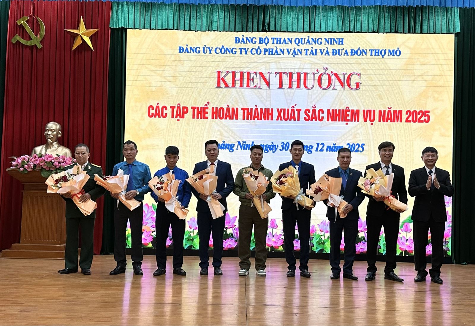 Chiều ngày 30/12/2025, Đảng uỷ Công ty cổ phần Vận tải và Đưa đón Thợ mỏ tổ chức Lễ trao tặng Huy hiệu 30 năm tuổi Đảng; Hội nghị tổng kết công tác Đảng và các tổ chức đoàn thể năm 2025, triển khai nhiệm vụ năm 2026.