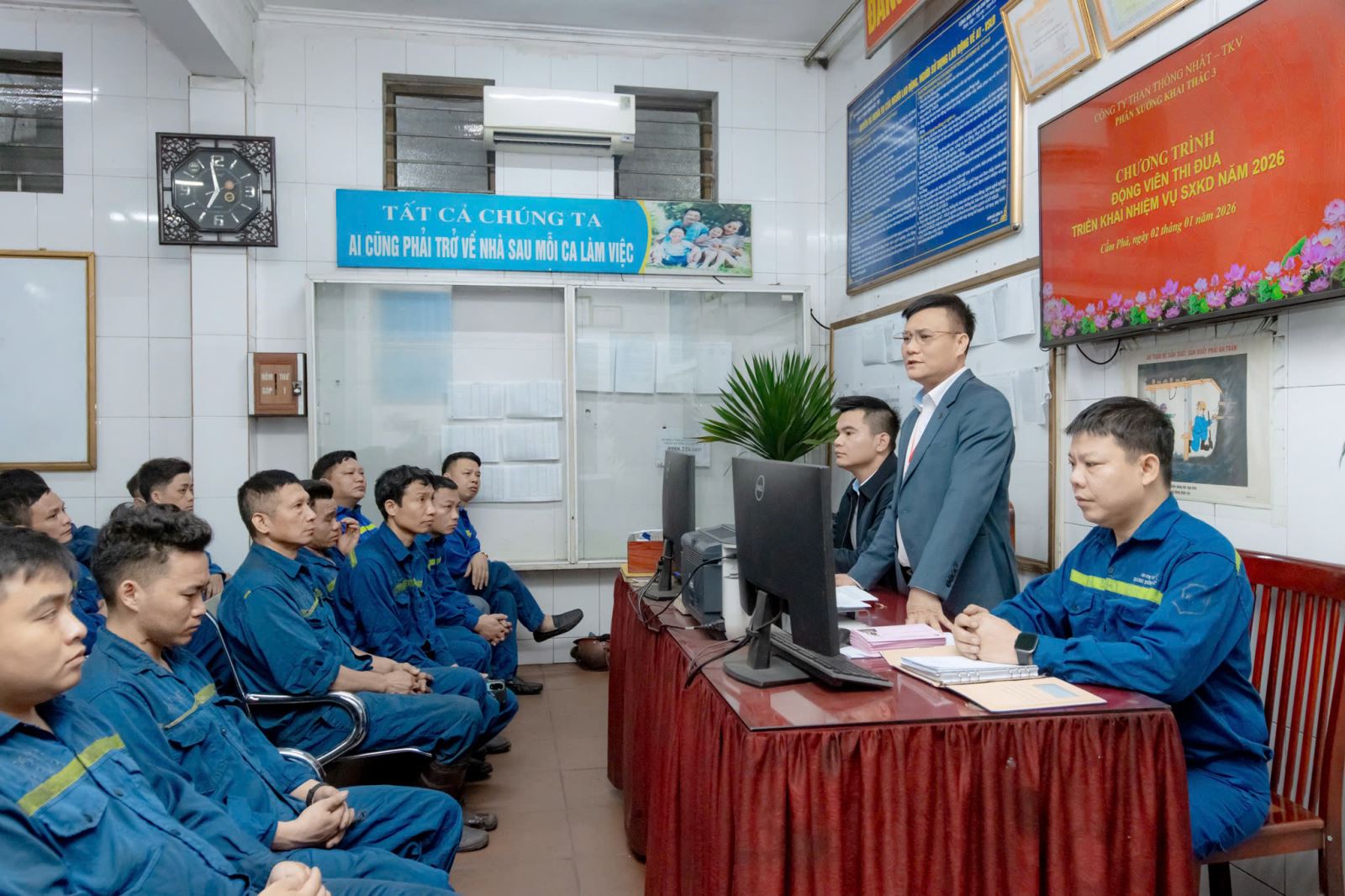 Tại các phòng nhật lệnh, cán bộ quản lý phân xưởng đã phổ biến nội dung phát động thi đua, quán triệt nhiệm vụ trọng tâm và các chỉ tiêu chủ yếu năm 2026, tập trung vào các nội dung then chốt như: sản lượng than khai thác, mét lò đào, công tác an toàn kỹ thuật, chất lượng sản phẩm, tiết kiệm chi phí và bảo vệ môi trường. Thông qua đó, mỗi tổ đội, mỗi người lao động đều nắm rõ mục tiêu, nhiệm vụ và trách nhiệm của mình ngay từ đầu năm.