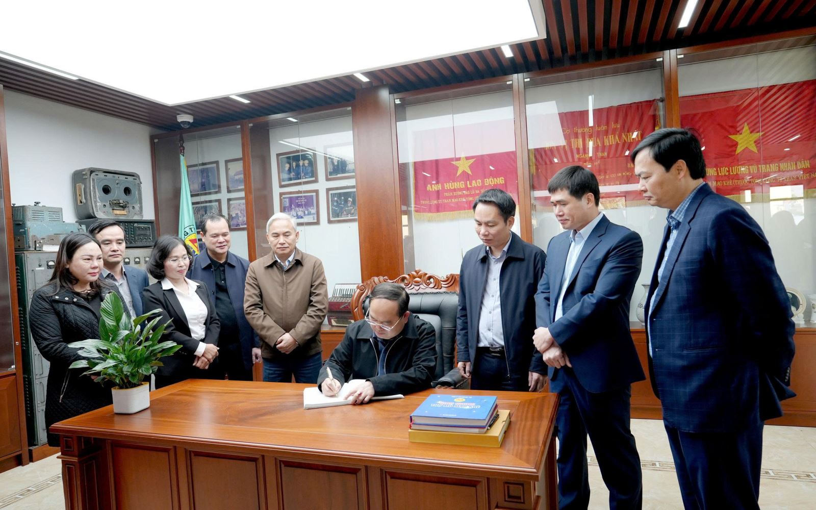 Đồng chí Quản Minh Cường, Bí thư Tỉnh ủy ghi bút tích lưu niệm vào Sổ vàng truyền thống của Than Mạo Khê