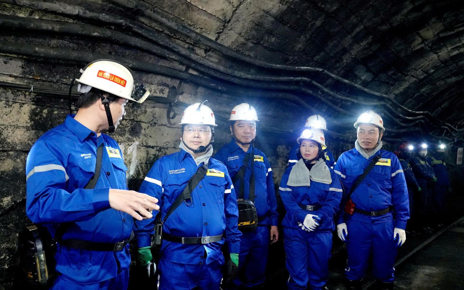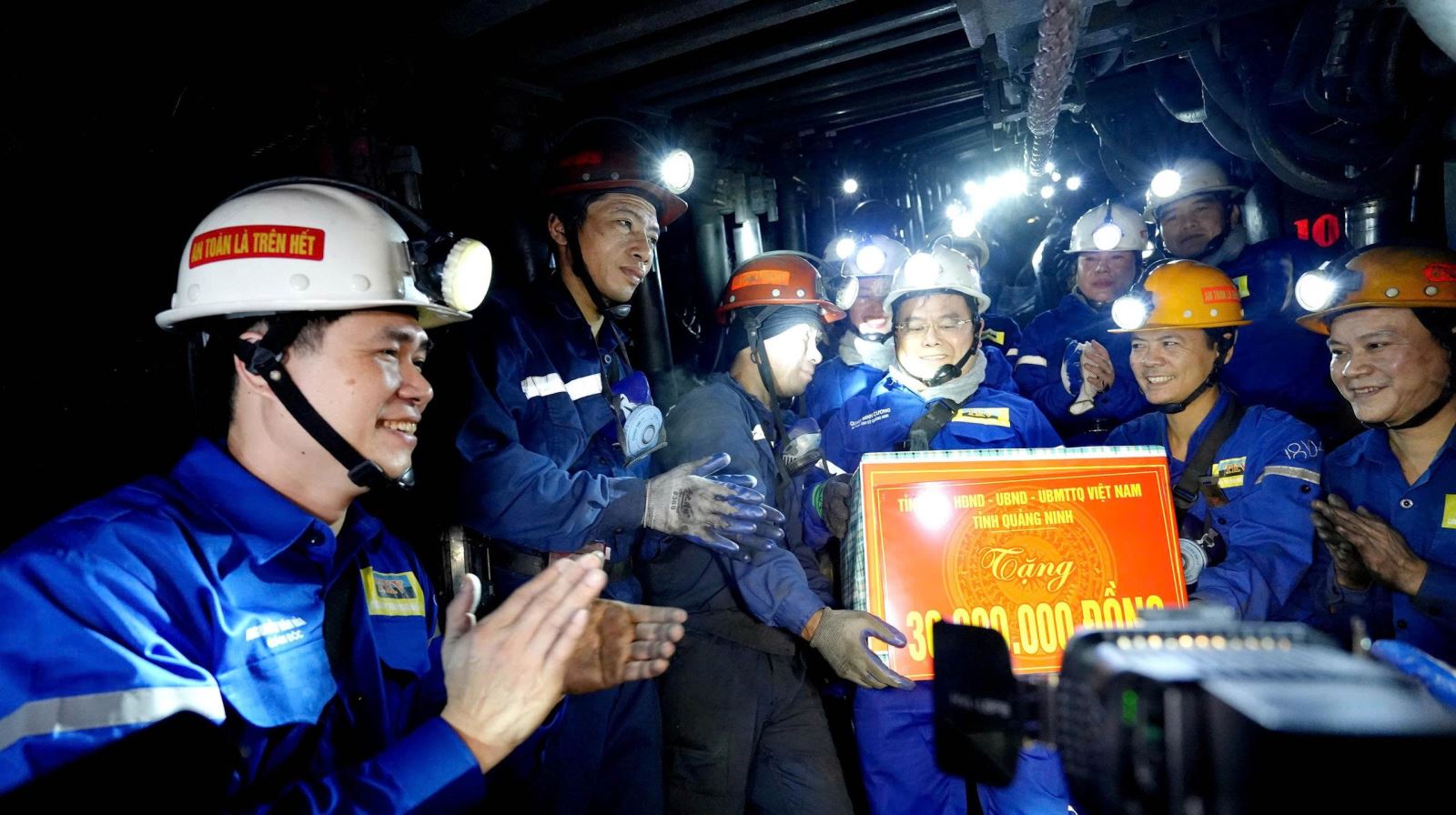 Đồng chí Quản Minh Cường, Bí thư Tỉnh ủy cùng lãnh đạo tỉnh Quảng Ninh, lãnh đạo TKV trực tiếp đi lò kiểm tra sản xuất và thăm, tặng quà động viên thợ mỏ