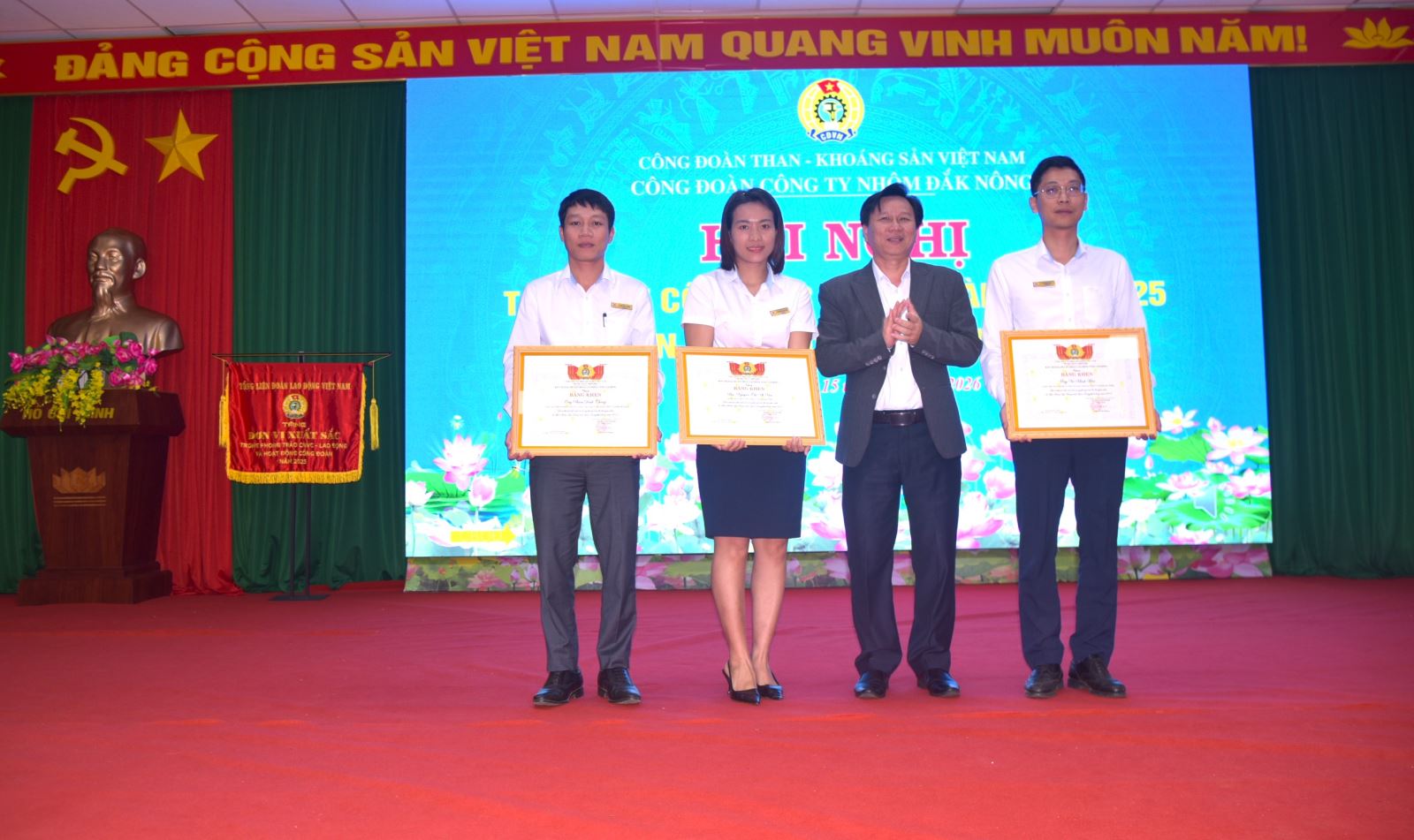 Tham dự và chỉ đạo hội nghị có đồng chí Phan Thanh Thái - Phó Chủ tịch Liên đoàn Lao động tỉnh Lâm Đồng; đồng chí Phạm Hồng Hạnh - Phó Chủ tịch Công đoàn Than - Khoáng sản Việt Nam (Công đoàn TKV). Về phía Công ty Nhôm Đắk Nông có sự tham dự của các đồng chí lãnh đạo Đảng ủy, Ban Lãnh đạo điều hành Công ty, cùng hơn 80 đoàn viên công đoàn xuất sắc đại diện cho các Công đoàn bộ phận trực thuộc.