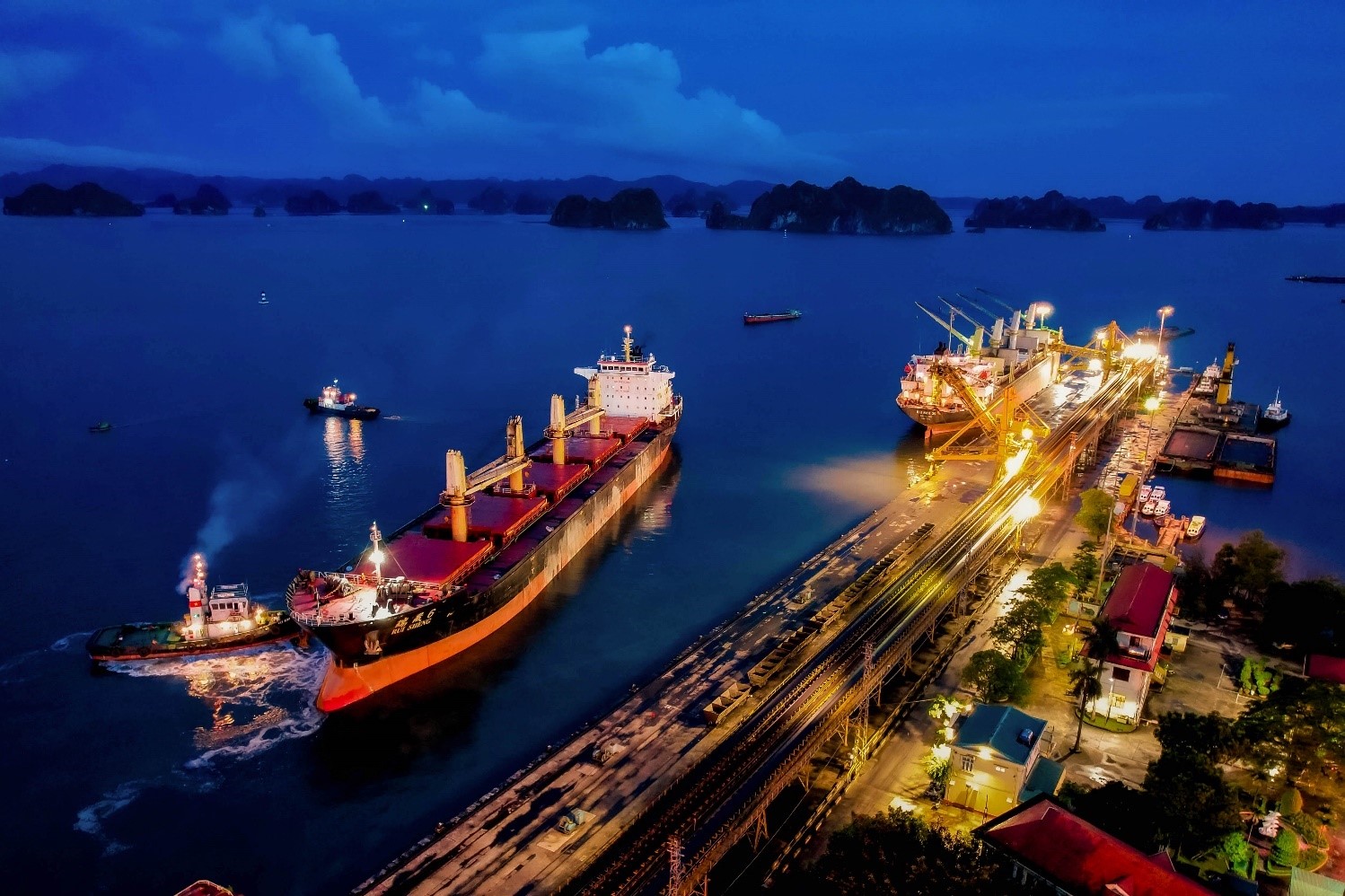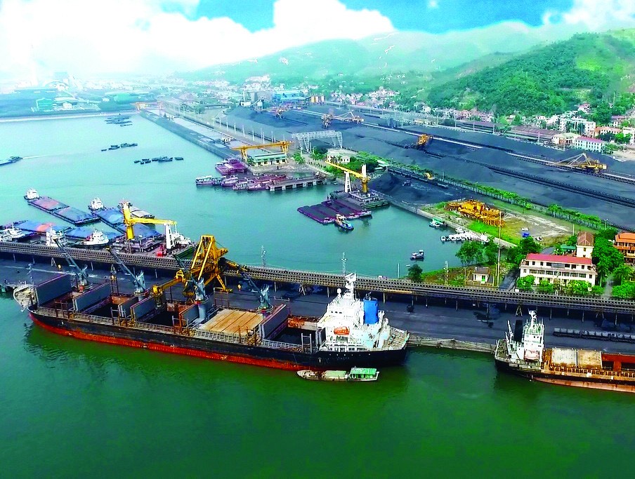 Tàu trọng tải lớn thực hiện vận chuyển than tại cảng Cửa Ông
