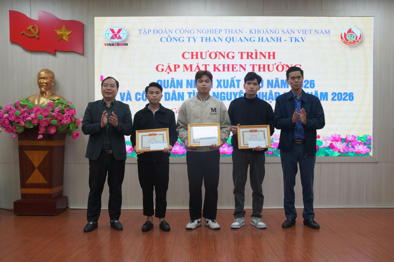 Công ty khen thưởng cho các quân nhân của Công ty hoàn thành nghĩa vụ trở về, tặng giấy khen và tiền thưởng để biểu dương tinh thần xung kích đối với 03 công dân tình nguyện nhập ngũ năm 2026