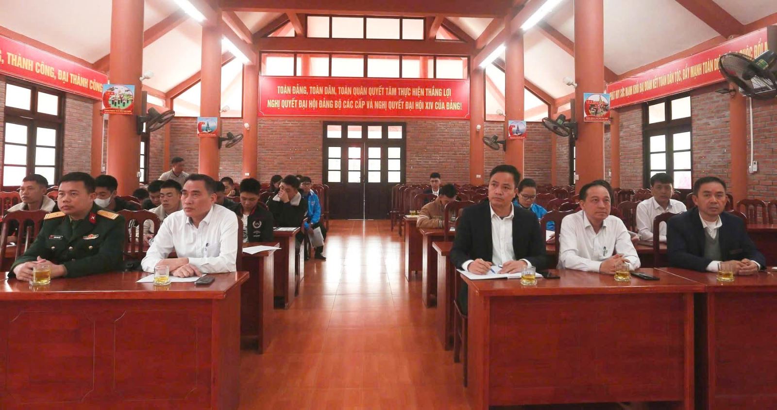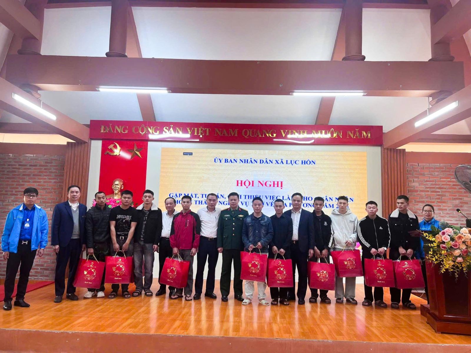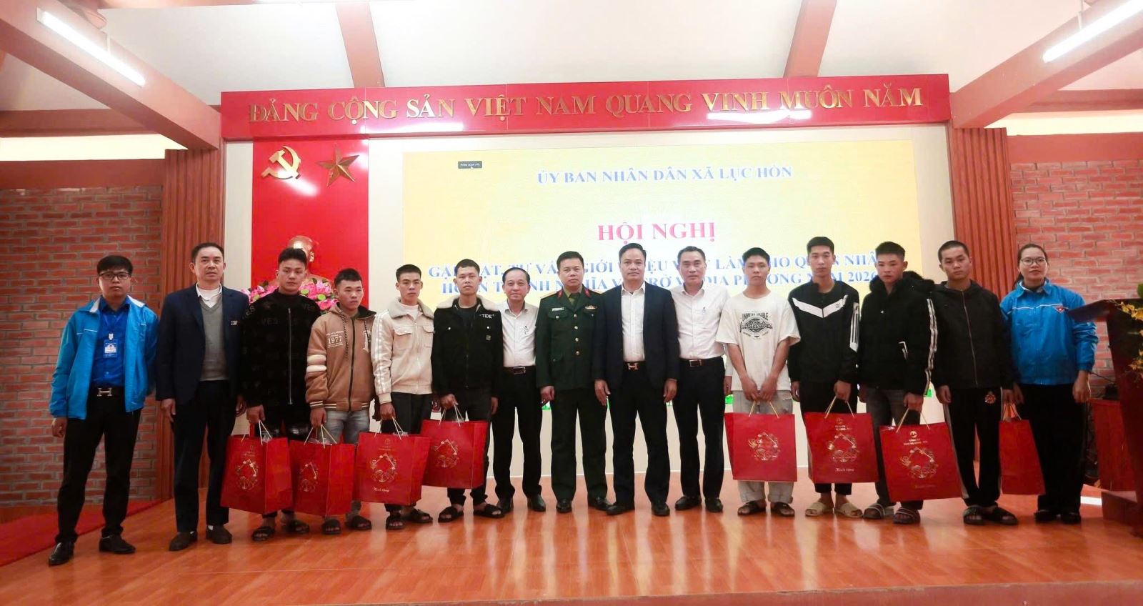 Lãnh đạo xã Lục Hồn, đại diện các đơn vị và Công ty Than Hạ Long chụp ảnh lưu niệm, tặng quà cho các thanh niên hoàn thành nghĩa vụ quân sự, trở về địa phương