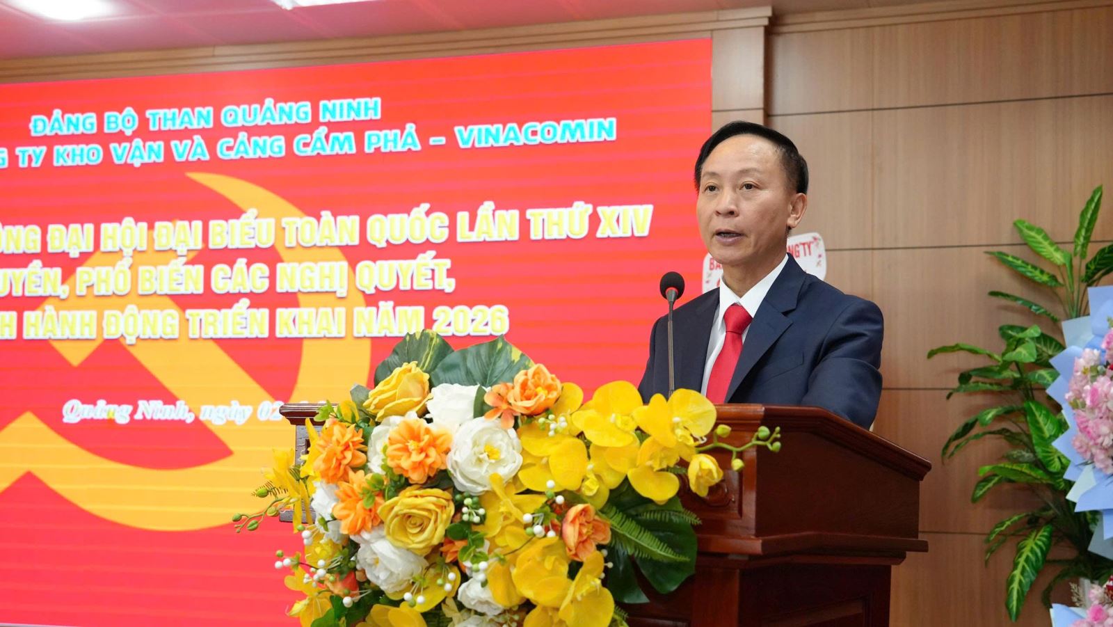 Cùng thời điểm, Đảng ủy Công ty Kho vận và cảng Cẩm Phả cũng tổ chức chương trình kỷ niệm gắn với việc học tập, quán triệt và triển khai các nghị quyết chuyên đề cho năm 2026. Dưới sự chủ trì của đồng chí Trần Văn Quảng - Bí thư Đảng ủy Công ty, hội nghị đã phổ biến chi tiết Nghị quyết số 05 của Tỉnh ủy Quảng Ninh và Nghị quyết số 01 của Đảng ủy Than Quảng Ninh về phương hướng nhiệm vụ năm 2026, đồng thời triển khai chương trình hành động thực hiện Nghị quyết Đại hội Đảng bộ Than Quảng Ninh lần thứ VI.