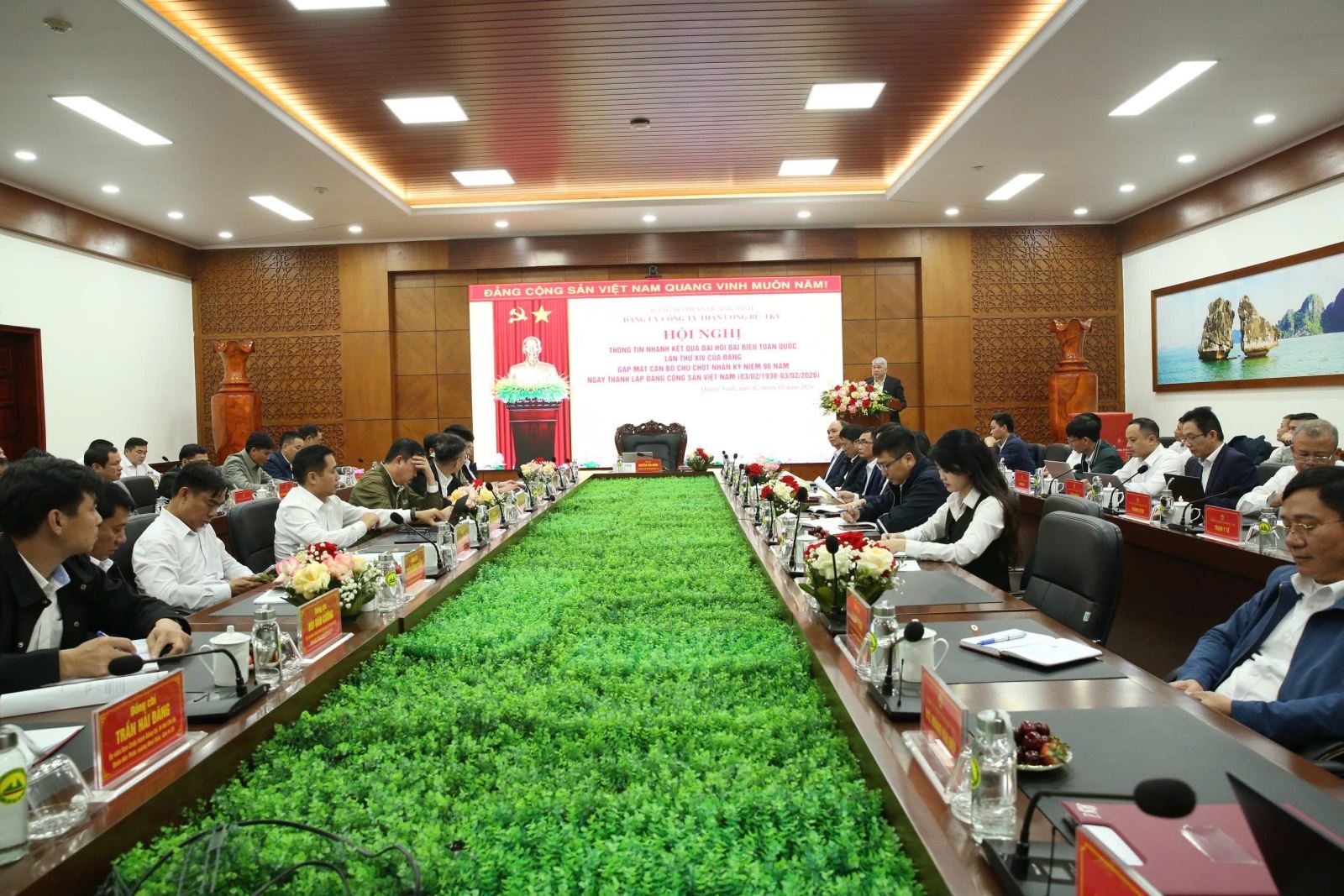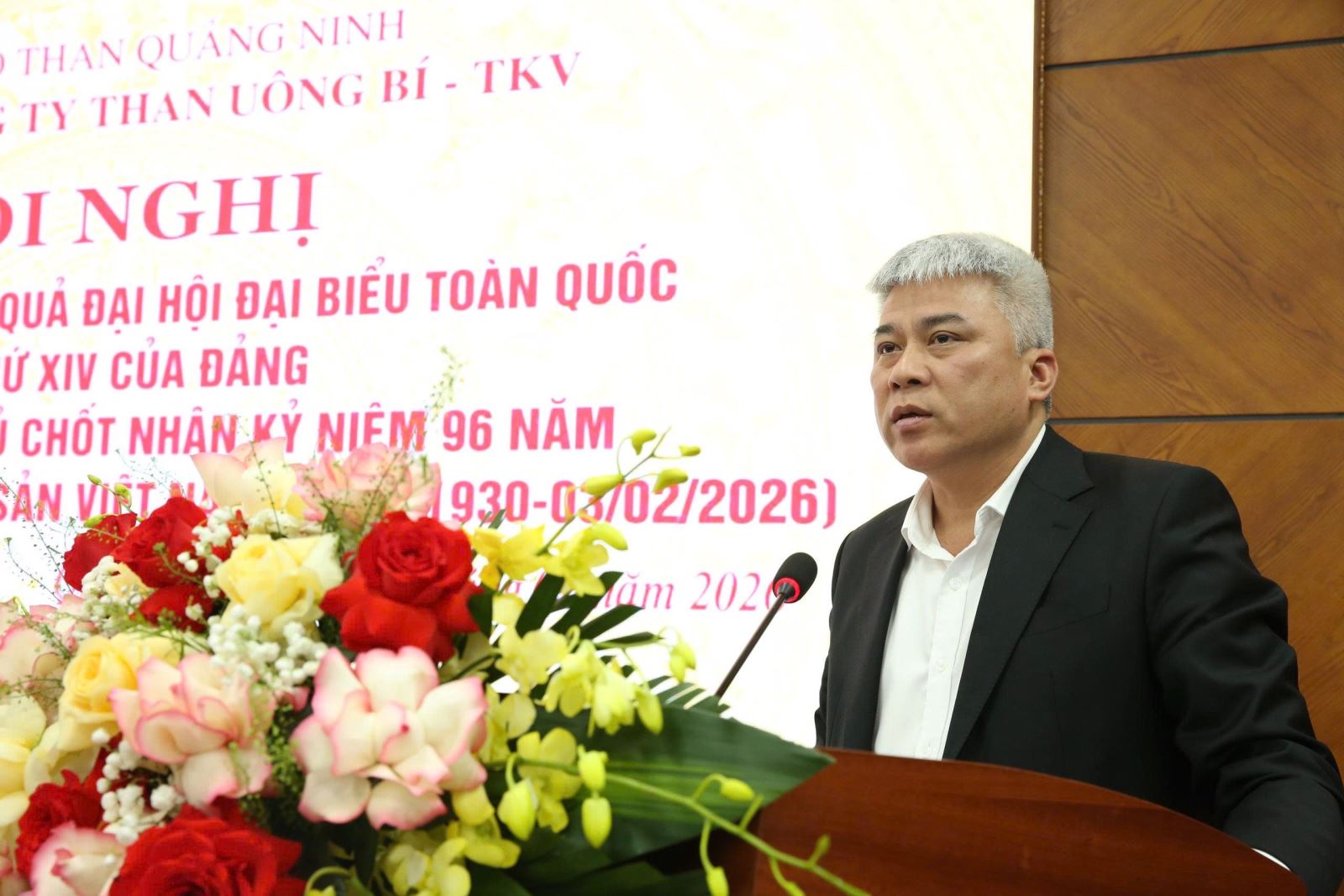 Vừa qua, Đảng ủy Công ty Than Uông Bí đã tổ chức Hội nghị thông tin nhanh kết quả Đại hội đại biểu toàn quốc lần thứ XIV của Đảng, nhân dịp kỷ niệm 96 năm Ngày thành lập Đảng Cộng sản Việt Nam (03/02/1930 - 03/02/2026). Hội nghị là đợt sinh hoạt chính trị quan trọng, góp phần đưa tinh thần, nội dung các Nghị quyết của Đại hội sớm đi vào thực tiễn sản xuất và công tác xây dựng Đảng tại Công ty.