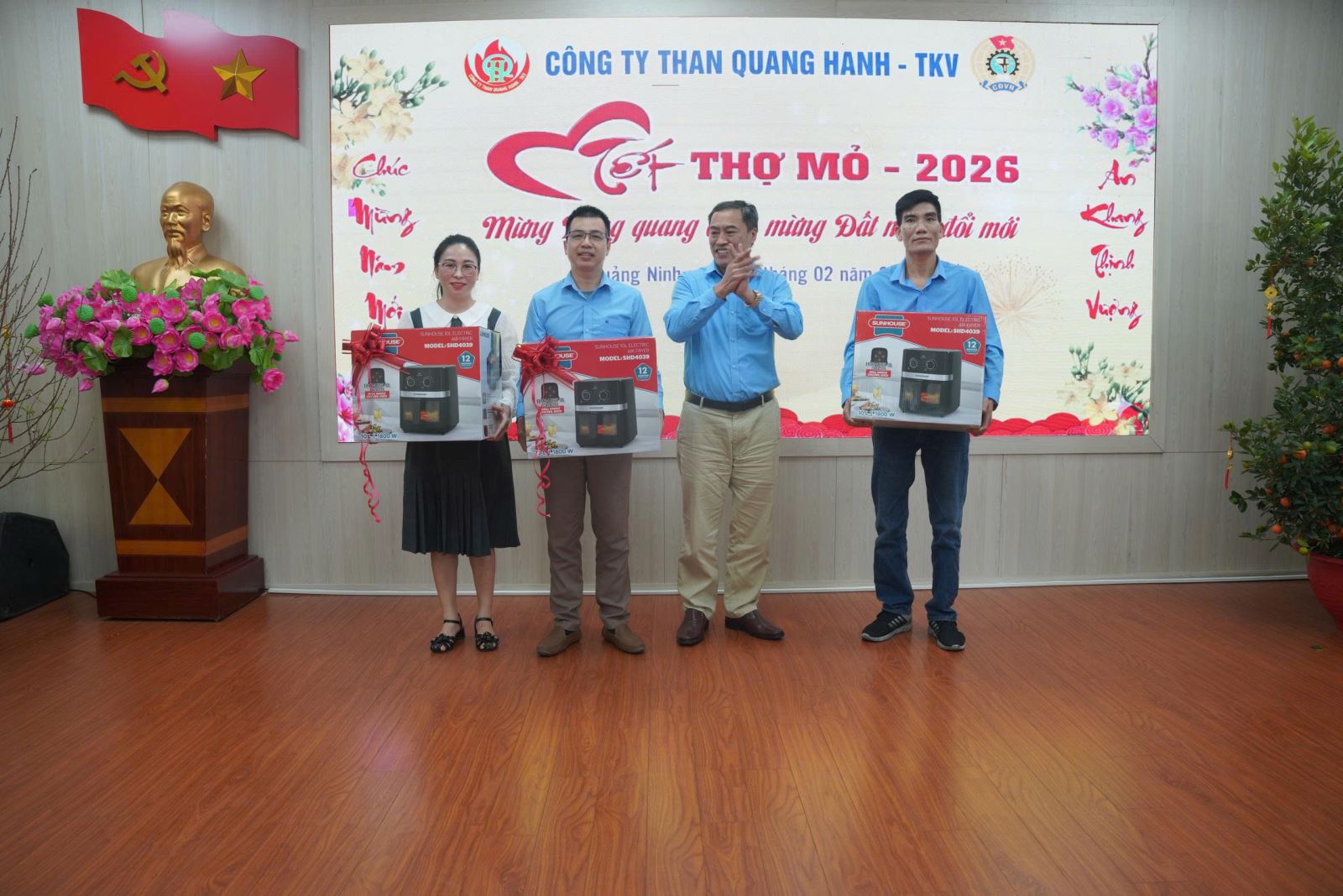 Tại chương trình, ông Nguyễn Thanh Tùng - Bí thư Đảng ủy, Giám đốc Công ty đã trực tiếp phát biểu thăm hỏi và chúc Tết CBCNV. Theo đó, dịp Tết Bính Ngọ 2026, Công ty Than Quang Hanh thực hiện chế độ chăm lo Tết rất chu đáo: Thăm hỏi trao quà cho 100 công nhân tiêu biểu và có hoàn cảnh khó khăn trực tiếp tại hội trường. Tổng mức phân bổ từ Tập đoàn: 392 người (106 người tiêu biểu, 286 người hoàn cảnh khó khăn); Hỗ trợ đặc biệt của Công ty: Thăm hỏi các gia đình bị suy giảm sức khỏe, hỗ trợ người lao động tiêu biểu với các mức từ 1 đến 5 triệu đồng/người; Tổ chức xe đưa đón người lao động về quê và quay lại làm việc, phối hợp tổ chức "Bữa cơm tất niên" đầm ấm…